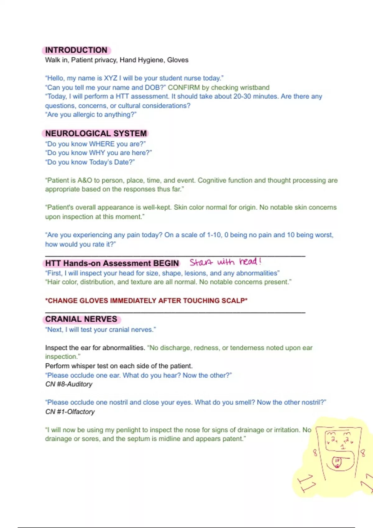 head to toe assessment script