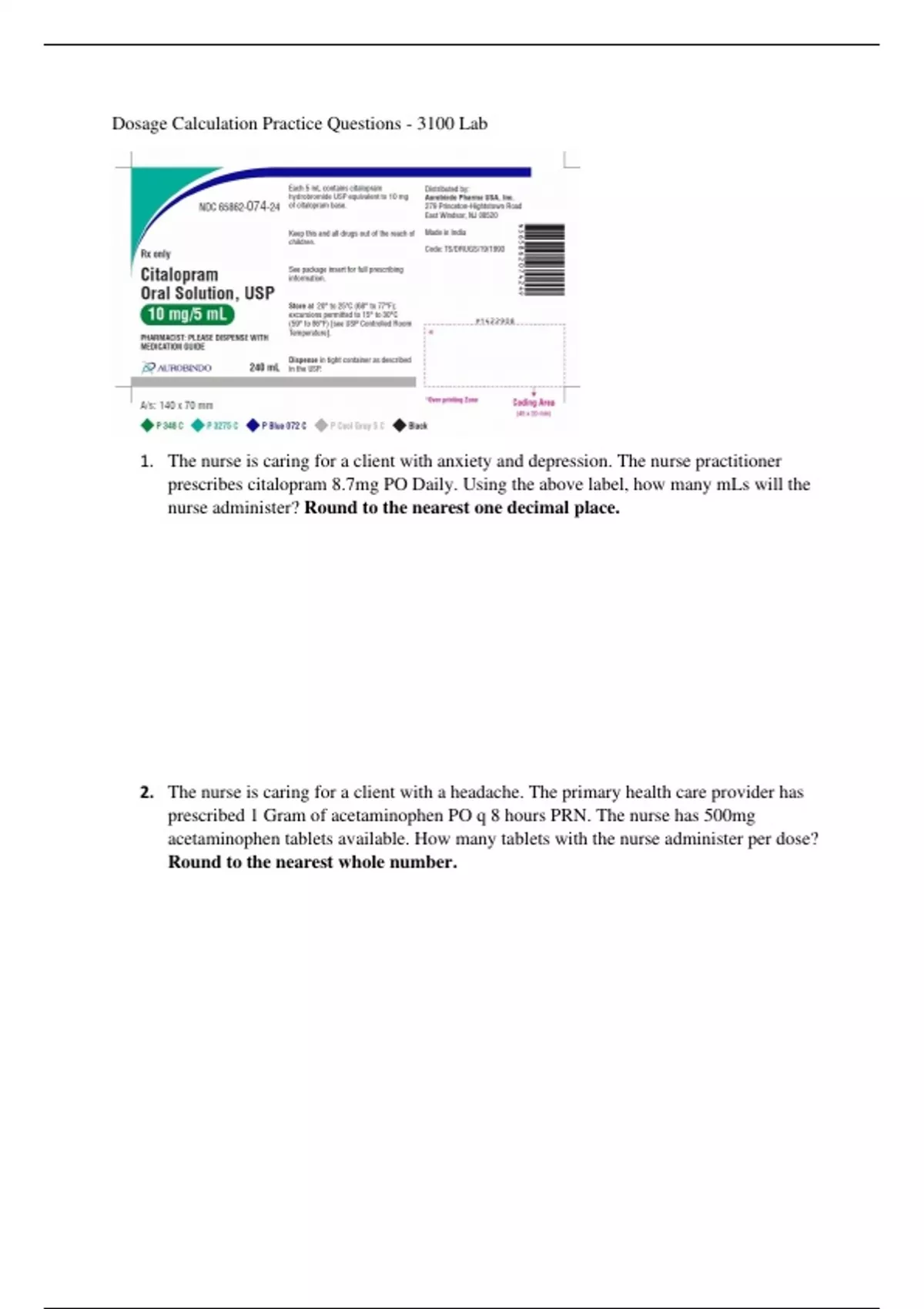 - dosage practice test