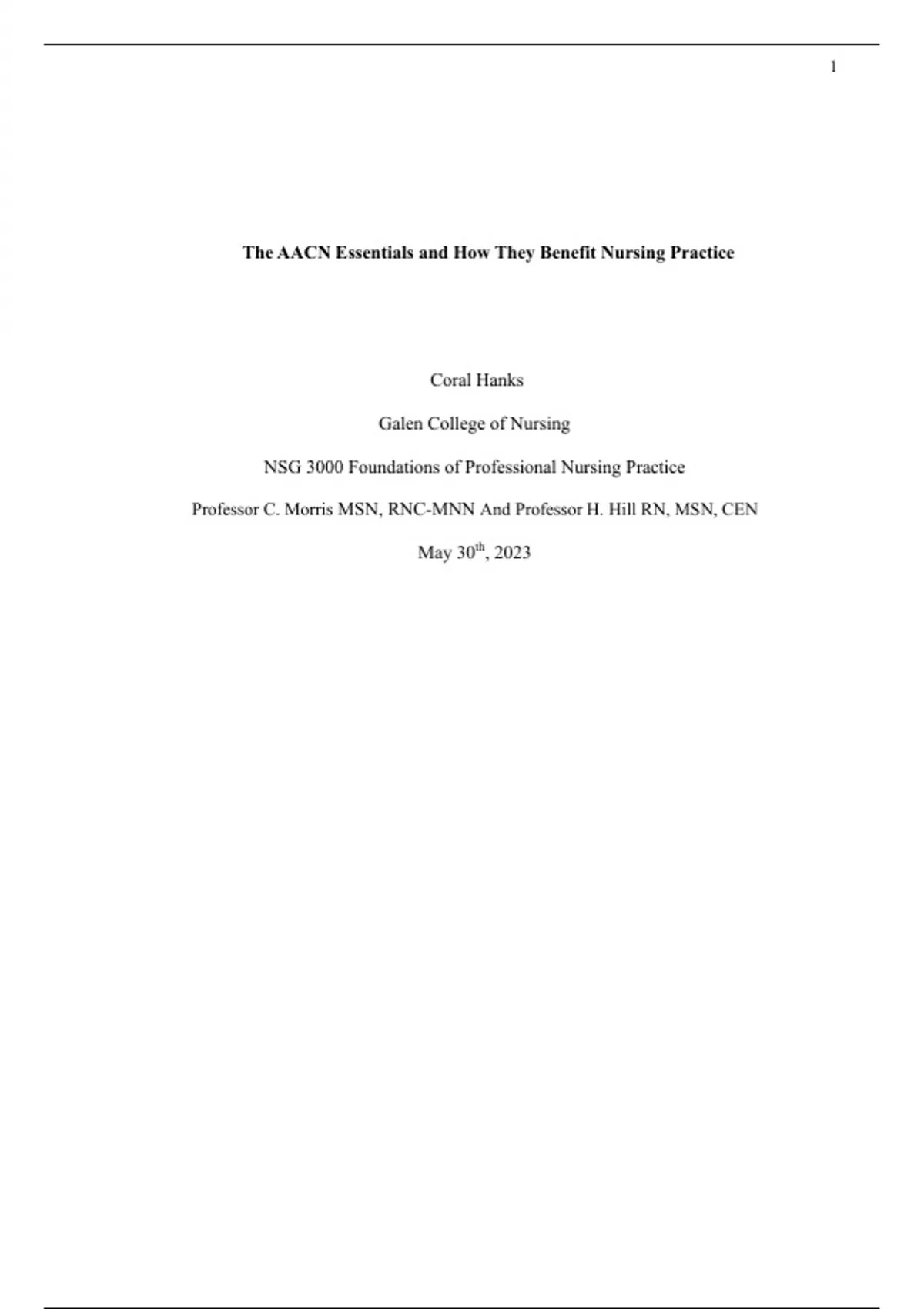 AACN BSN essentials as a part three