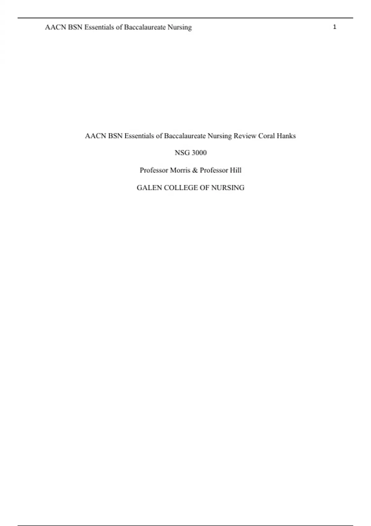 This is the full essay for the AACN BSN, Essentials of Bacclaureate and Nursing essay