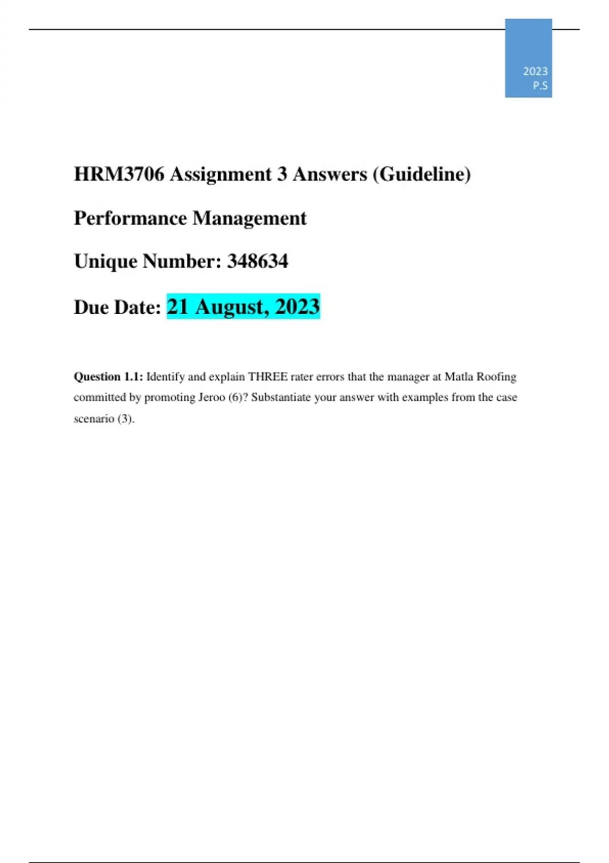 HRM3706 Assignment 3 Answers (Guideline)