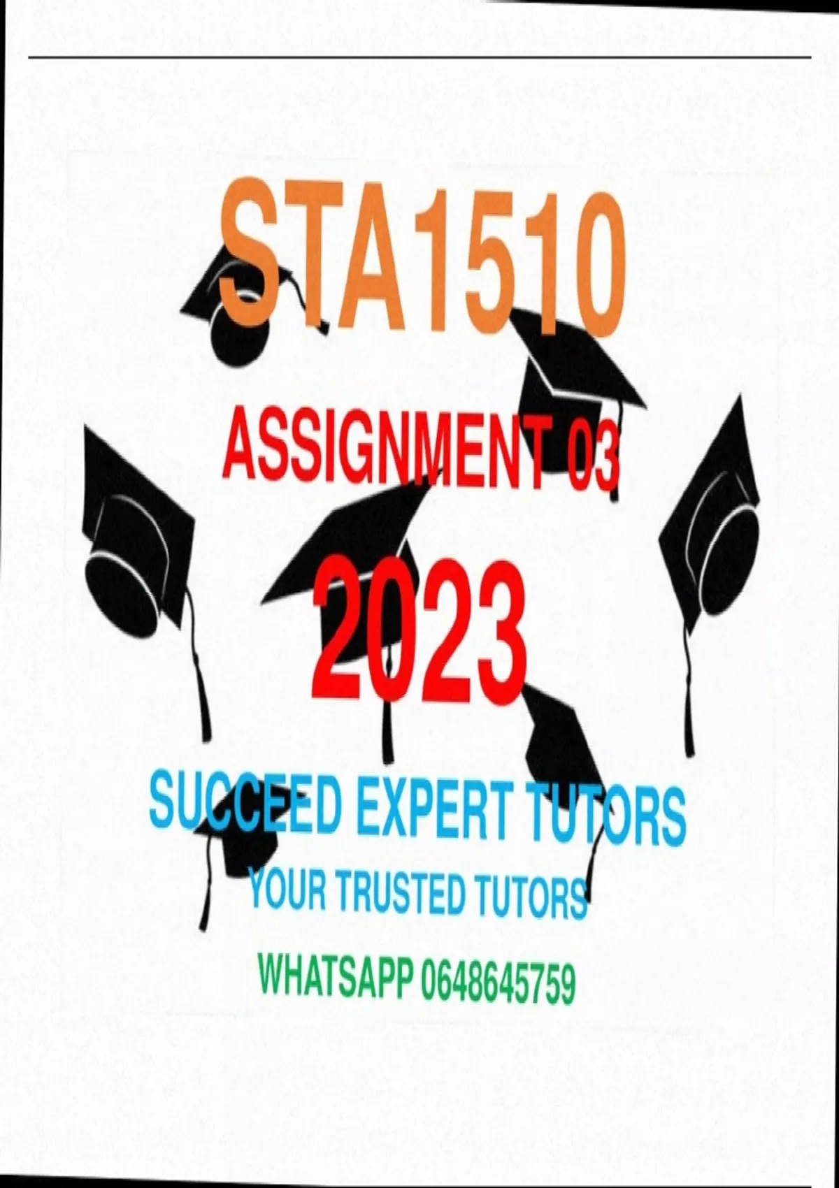 THIS DOCUMENT CONTAINS TRUSTED AND VERIFIED SOLUTIONS FOR STA1510 ASSIGNMENT 3. DISTINCTION GUARANTEED WITH THESE PROVIDED SOLUTIONS. *9* FOR MORE INFORMATION OR EXTRA HELP