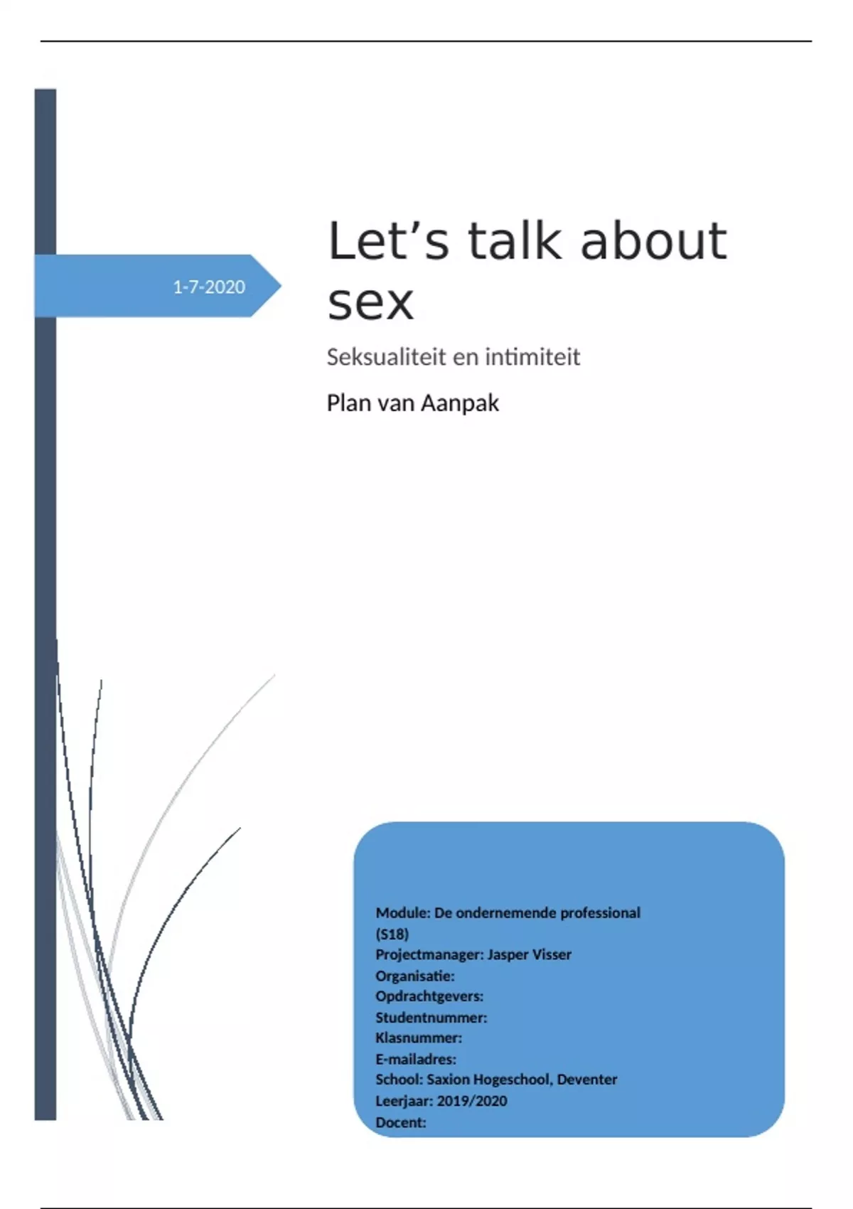 Dit verslag is tot stand gekomen als opdracht voor de module ‘de ondernemende professional’ en is