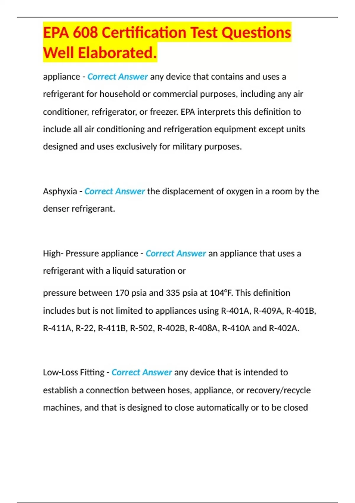 EPA 608 Certification Test Questions Well Elaborated.