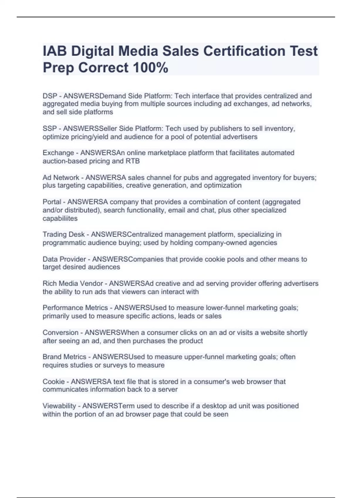IAB Digital Media Sales Certification Test Prep Correct 100%