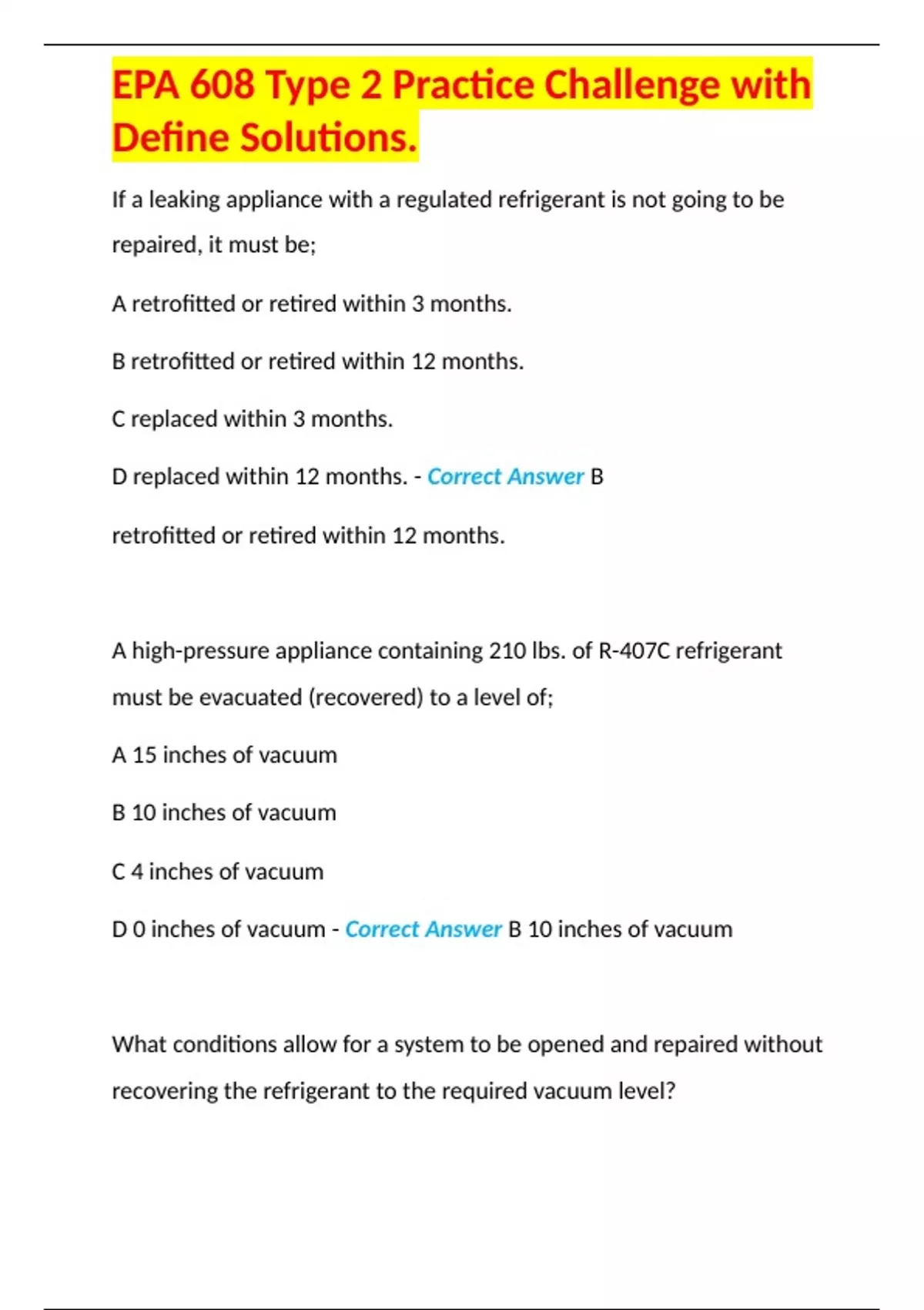 EPA 608 Type 2 Practice Challenge with Define Solutions.