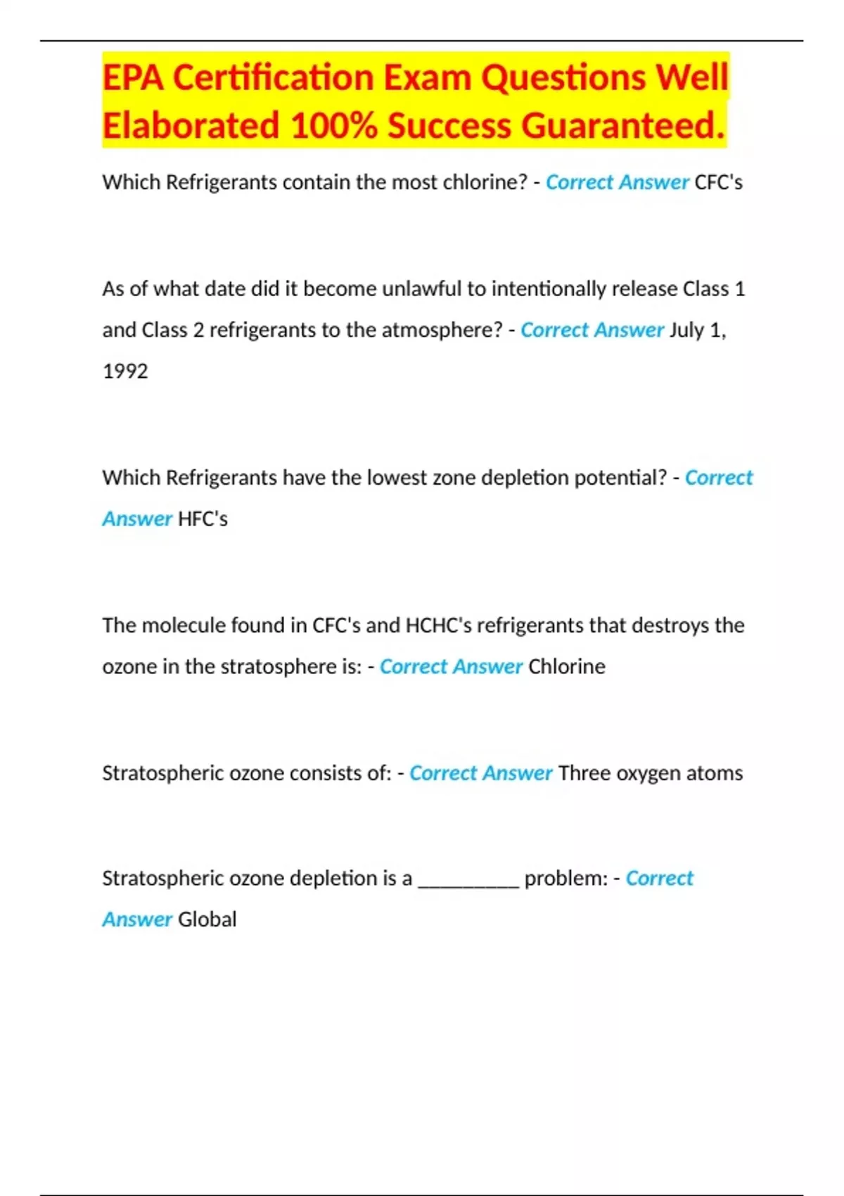 EPA Certification Exam Questions Well Elaborated 100% Success Guaranteed.