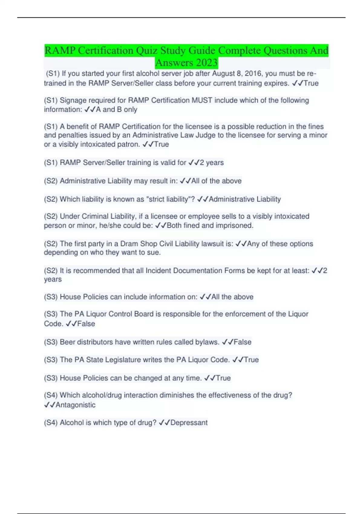RAMP Certification Quiz Study Guide Complete Questions And Answers 2023 RAMP Certification Quiz Study Guide Complete Questions And Answers 2023