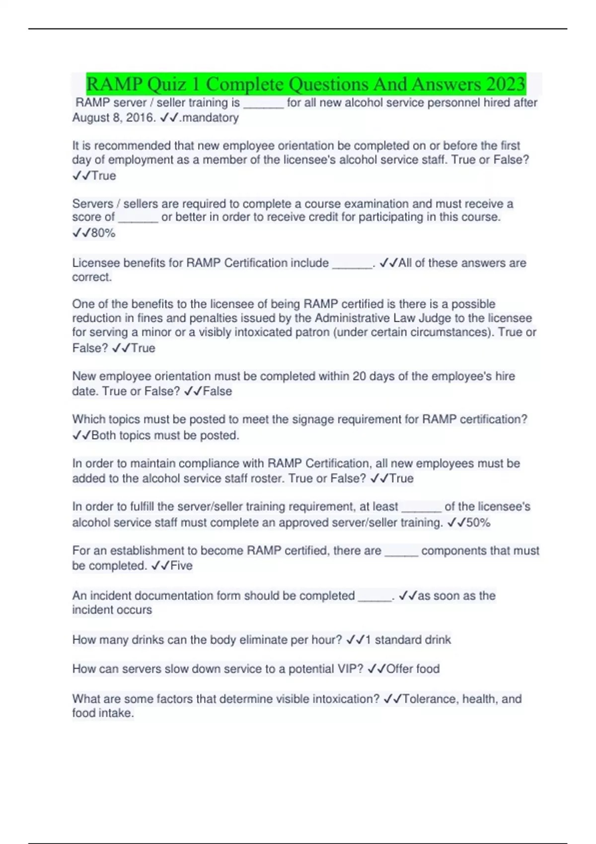 RAMP Quiz 1 Complete Questions And Answers 2023 RAMP Quiz 1 Complete Questions And Answers 2023