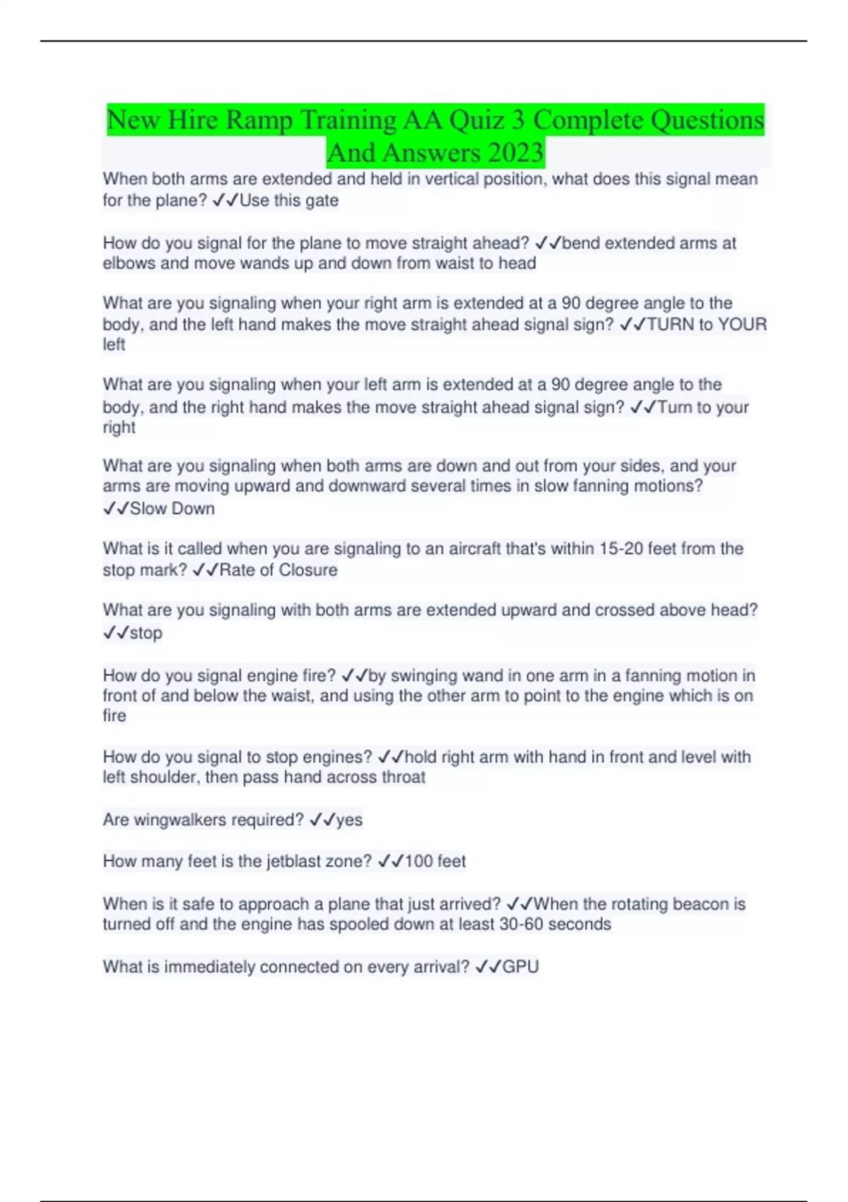 New Hire Ramp Training AA Quiz 3 Complete Questions And Answers 2023 New Hire Ramp Training AA Quiz 3 Complete Questions And Answers 2023