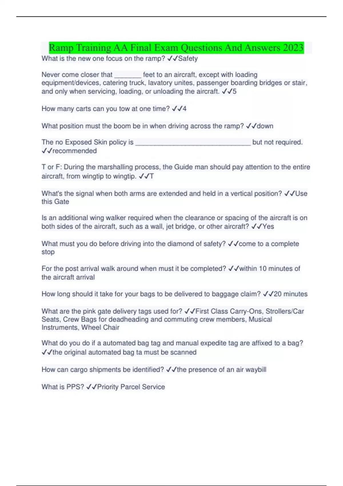 Ramp Training AA Final Exam Questions And Answers 2023