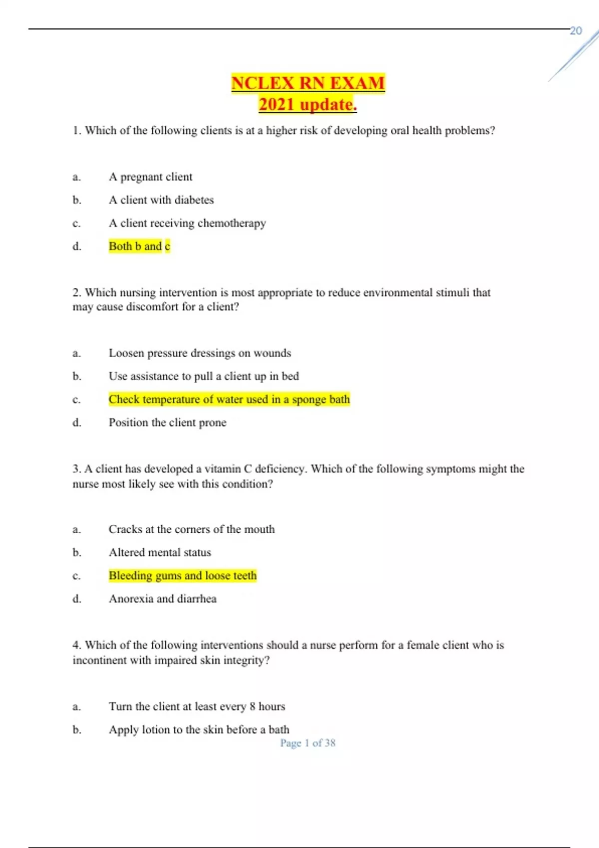 . Which of the following clients is at a higher risk of developing oral health problems? a. A pregnant client b. A client with diabetes c. A client receiving chemotherapy d. Both b and c