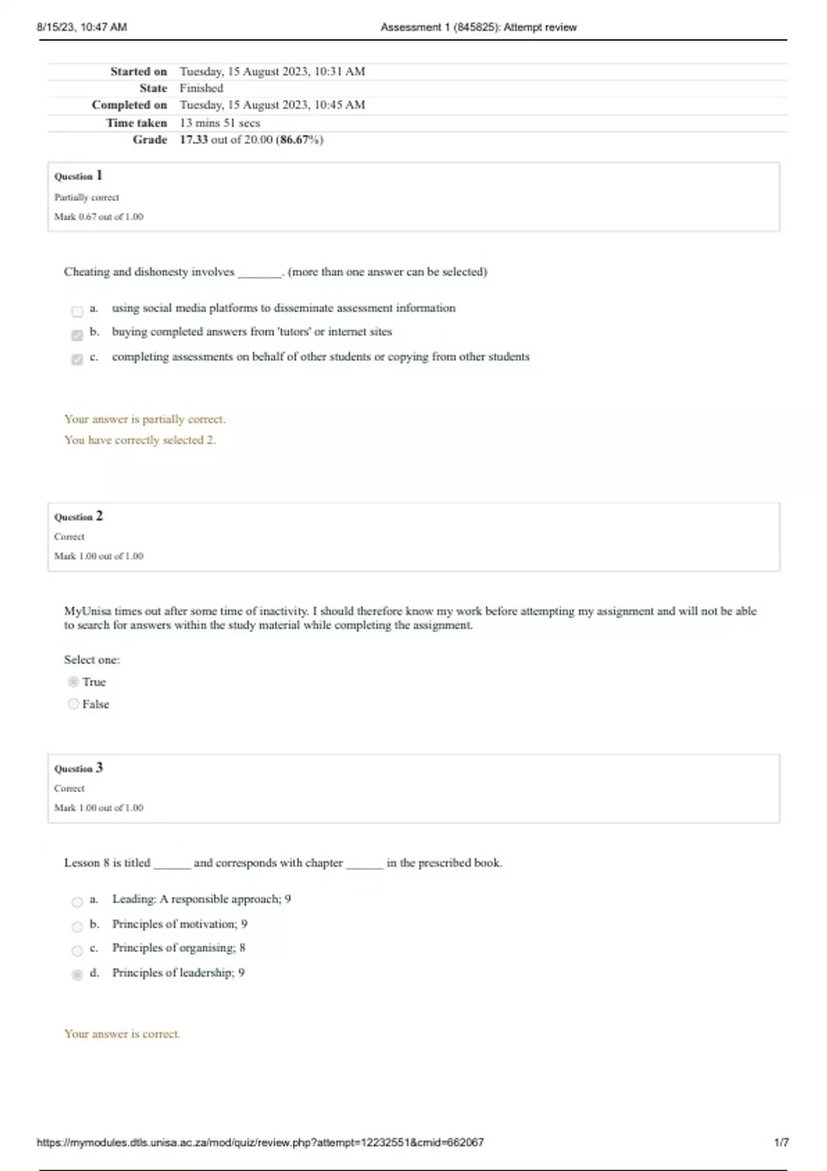 ,8/15/23, 10:47 AM Assessment 1 (845825): Attempt review