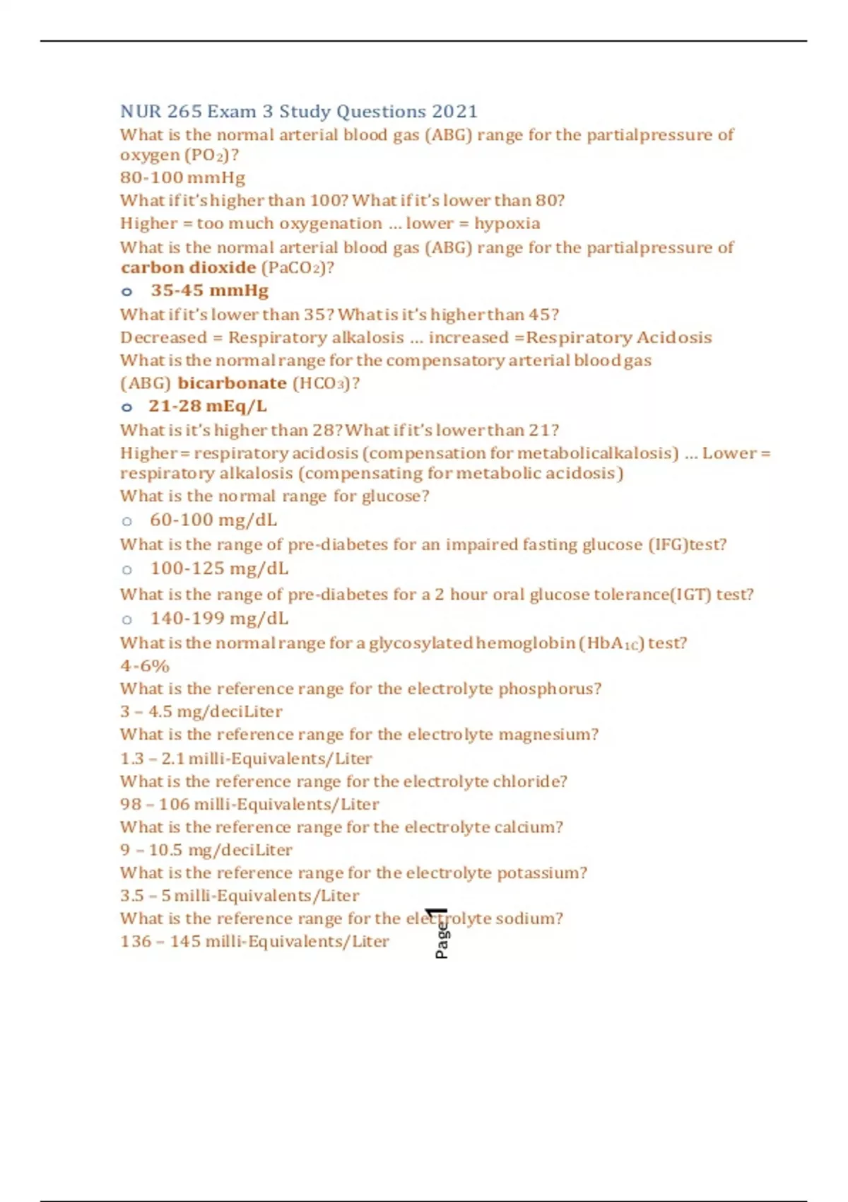 NUR 265 Exam 3 Study Questions 2021 NUR 265 Exam 3 Study Questions 2021 NUR 265 Exam 3 Study Questions 2021