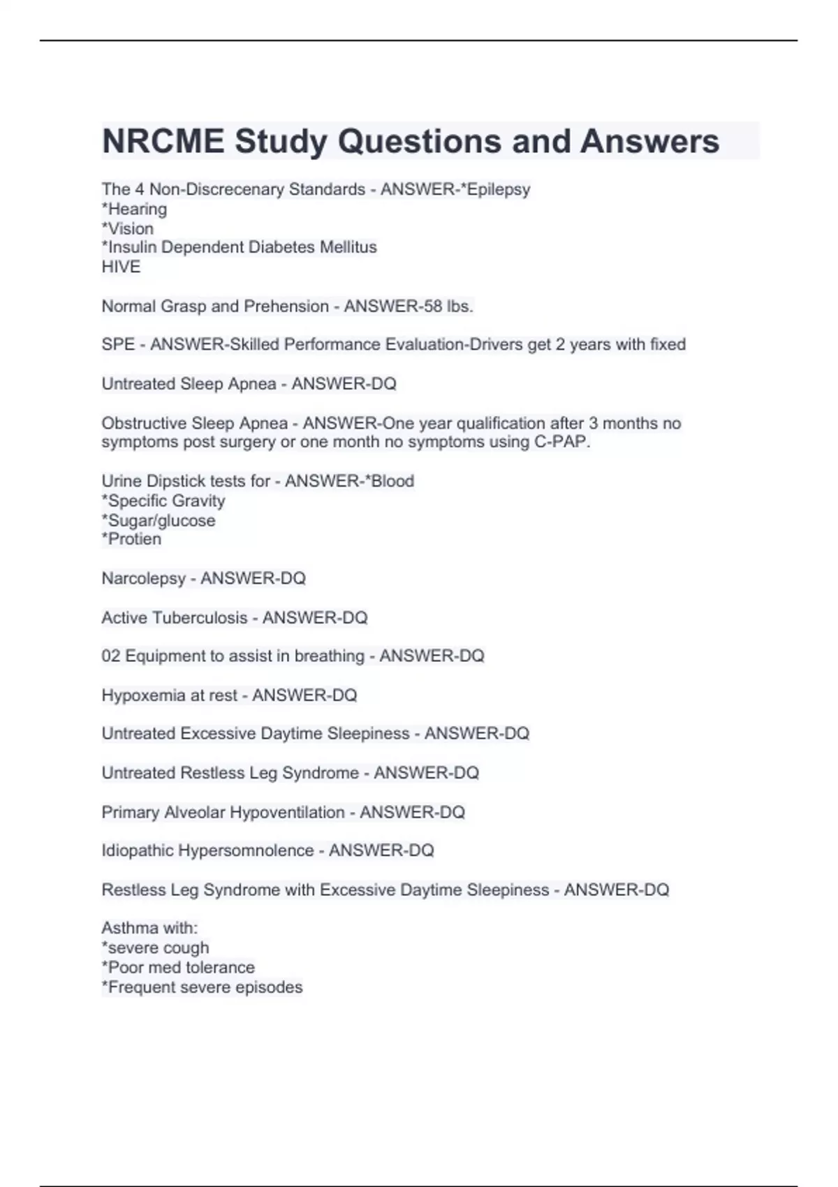 NRCME-Exam Questions and Answers