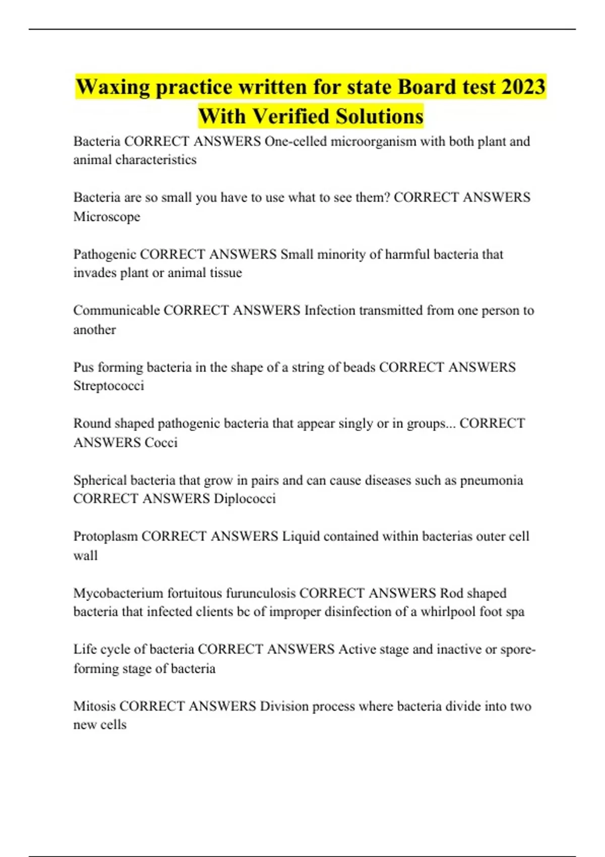 Waxing practice written for state Board test 2023 With Verified Solutions