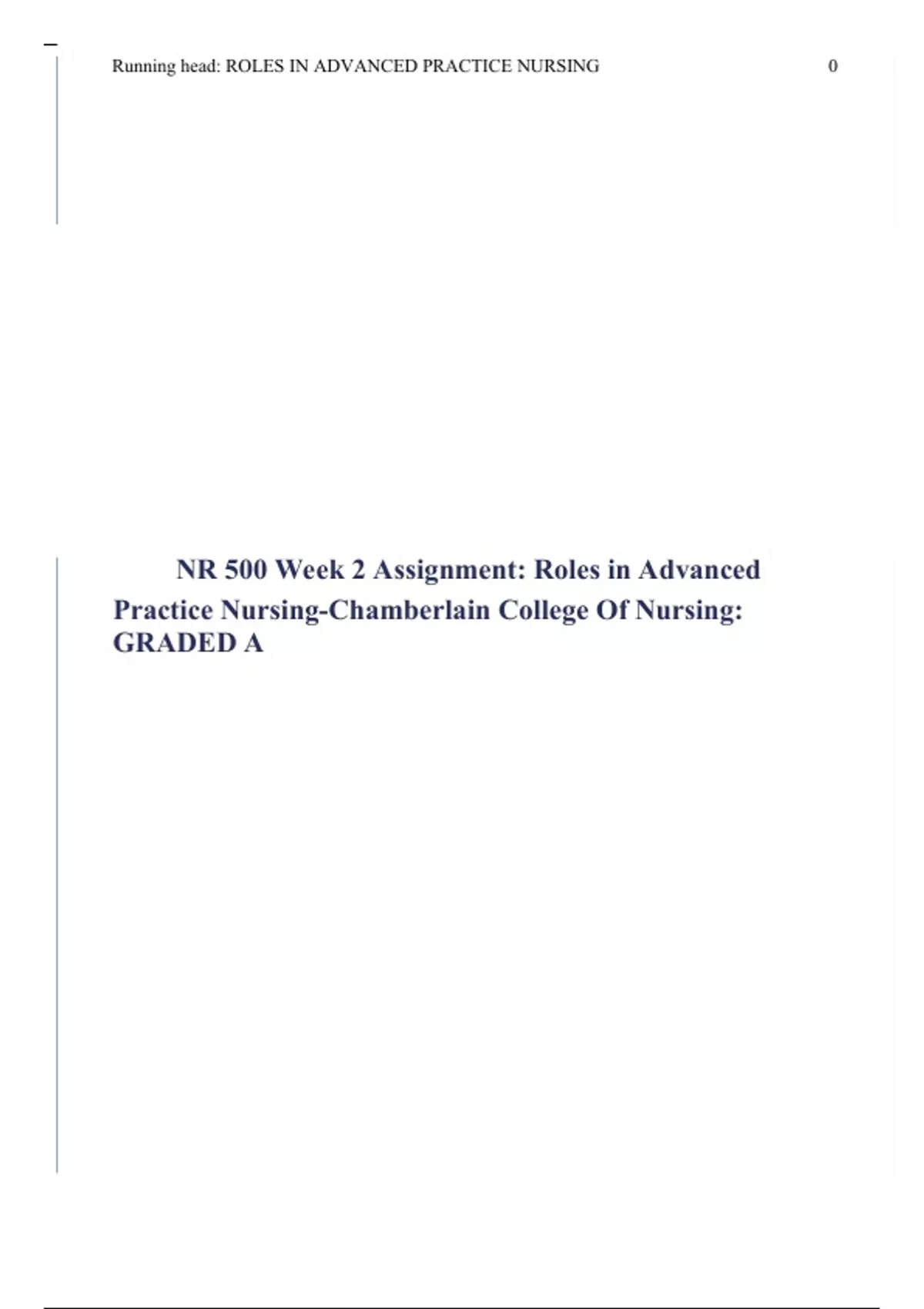NR 500 Week 2 Assignment: Roles in Advanced Practice Nursing-Chamberlain College Of Nursing: GRADED A