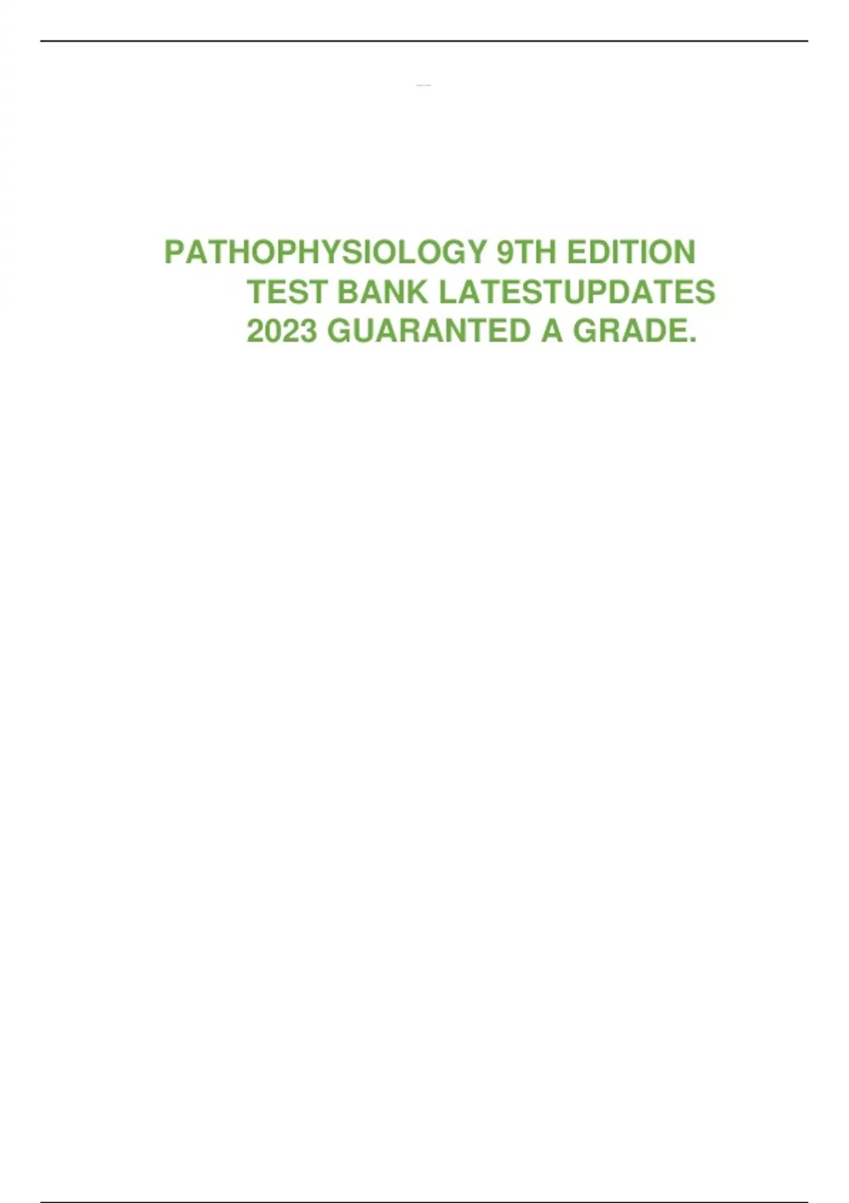 PATHOPHYSIOLOGY 9TH EDITION TEST BANK LATEST UPDATES 2023 GUARANTED A GRADE