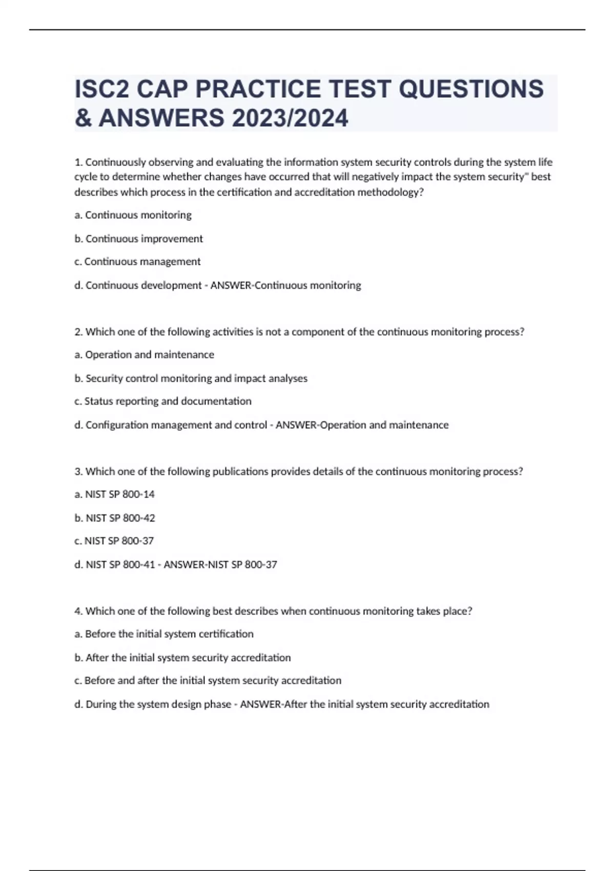 d. Continuous development - ANSWER-Continuous monitoring