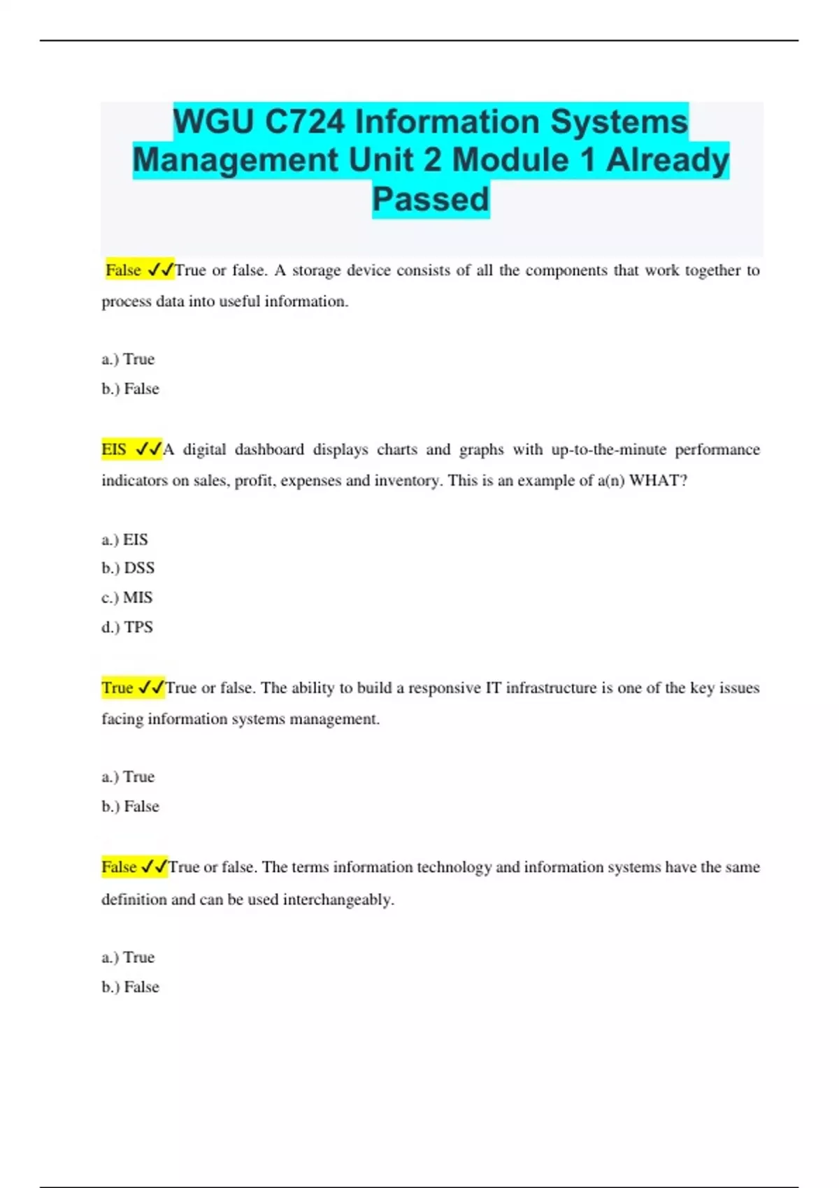 WGU C724 Information Systems Management Unit 2 Module 1 Already Passed