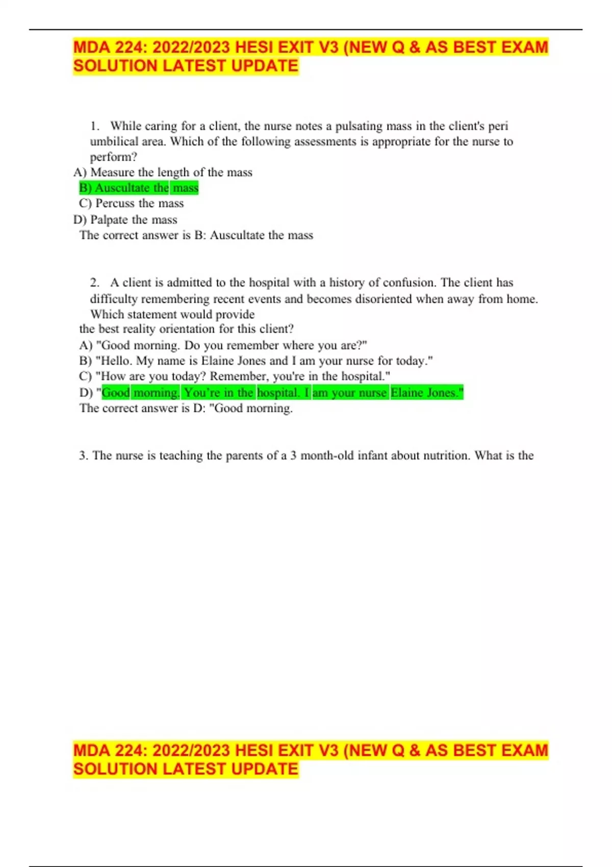MDA 224: 2022/2023 HESI EXIT V3 (NEW Q & AS BEST EXAM SOLUTION LATEST UPDATE