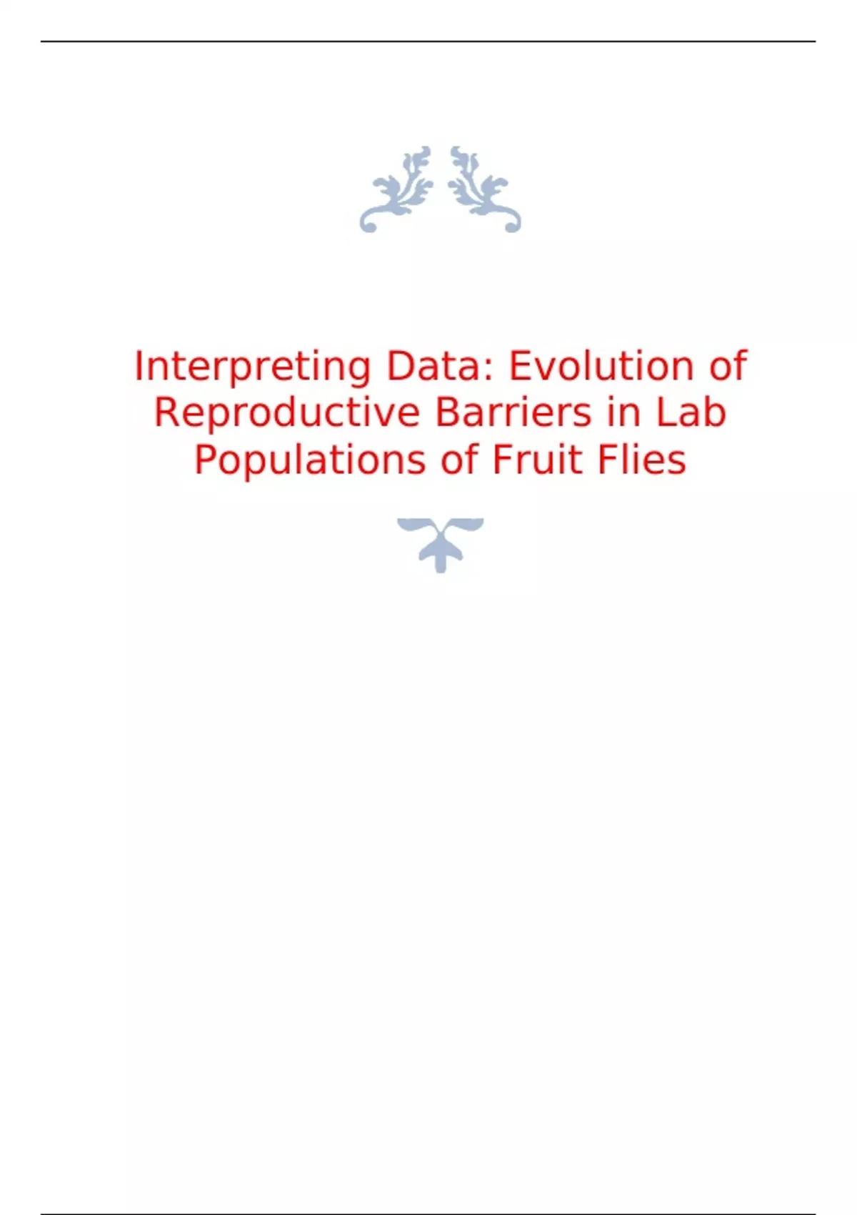Interpreting Data: Evolution of Reproductive Barriers in Lab Populations of Fruit Flies