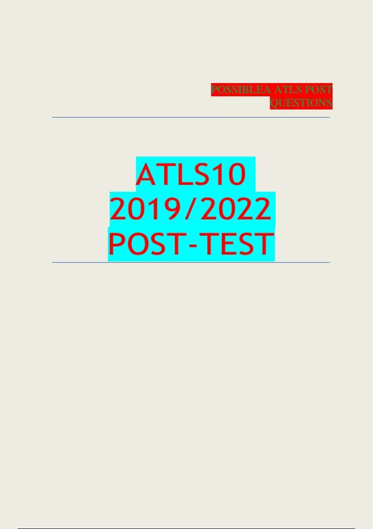 ATLS10 2019/2022 Post-Test ATLS10 exam questions with answers (answers outlined!!)