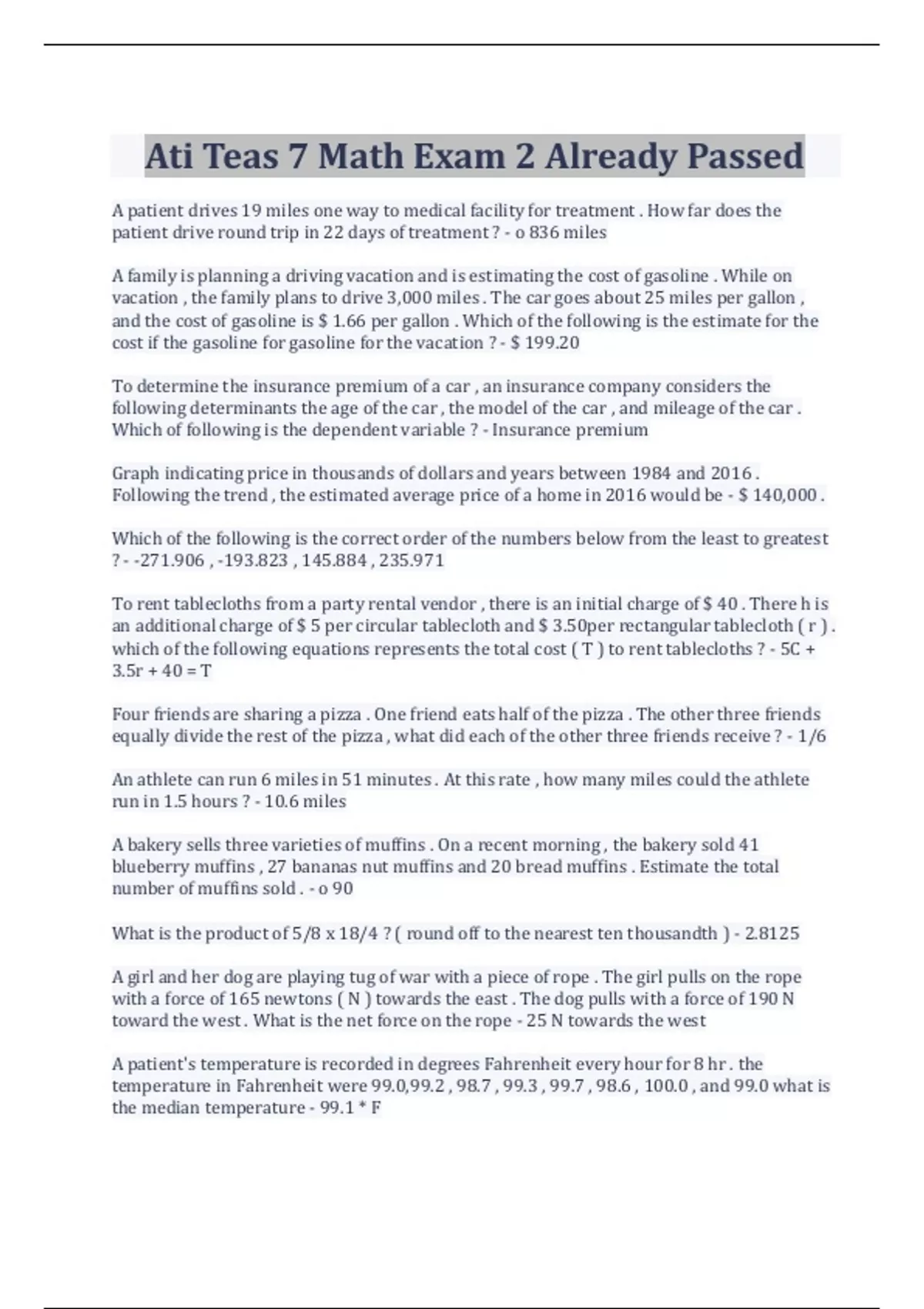 Ati Teas 7 Math Exam 2 Already Passed