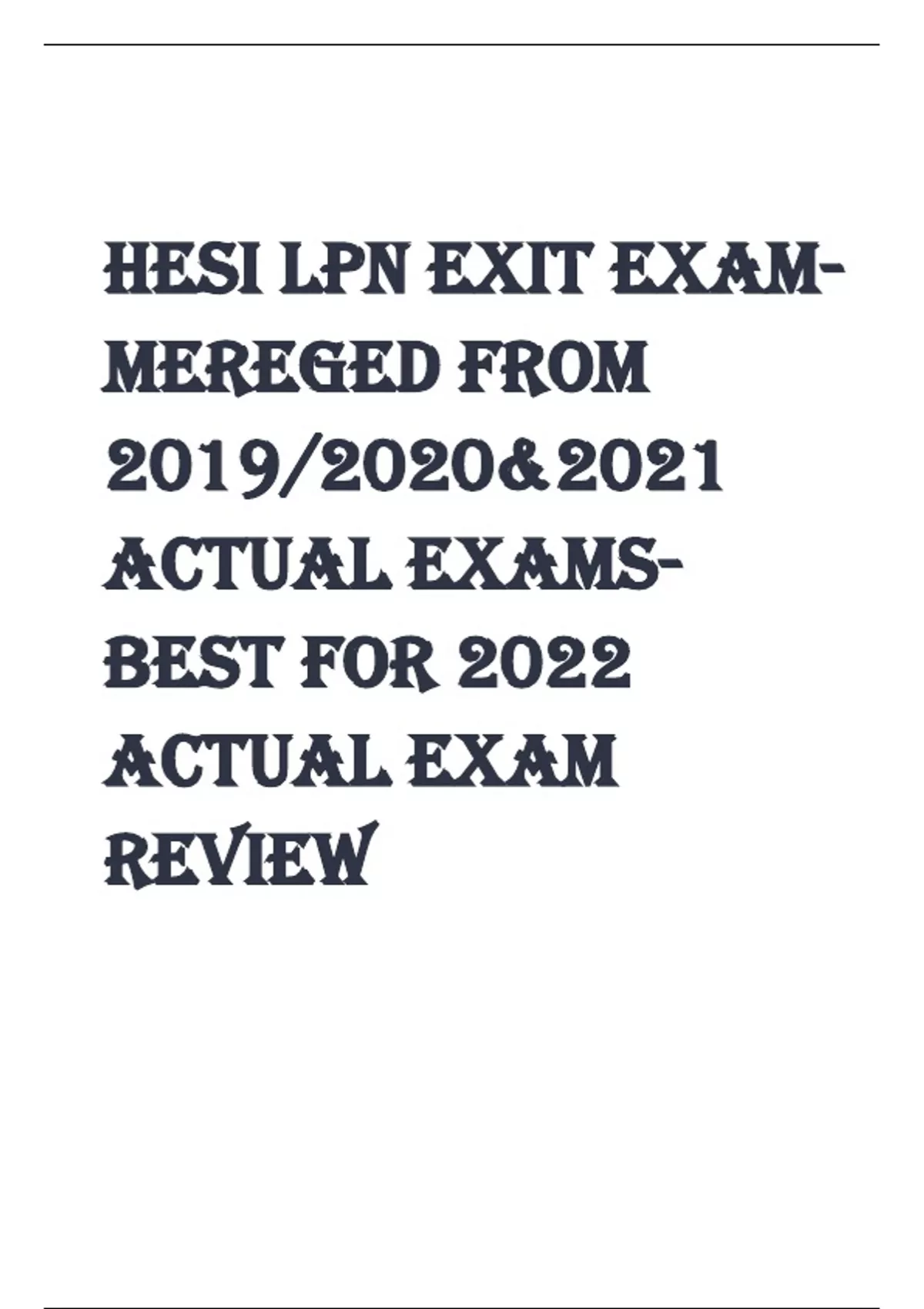 HESI LPN EXIT EXAMMEREGED FROM 2019/2020&2021 ACTUAL EXAMSBEST FOR 2023 ACTUAL EXAM REVIEW