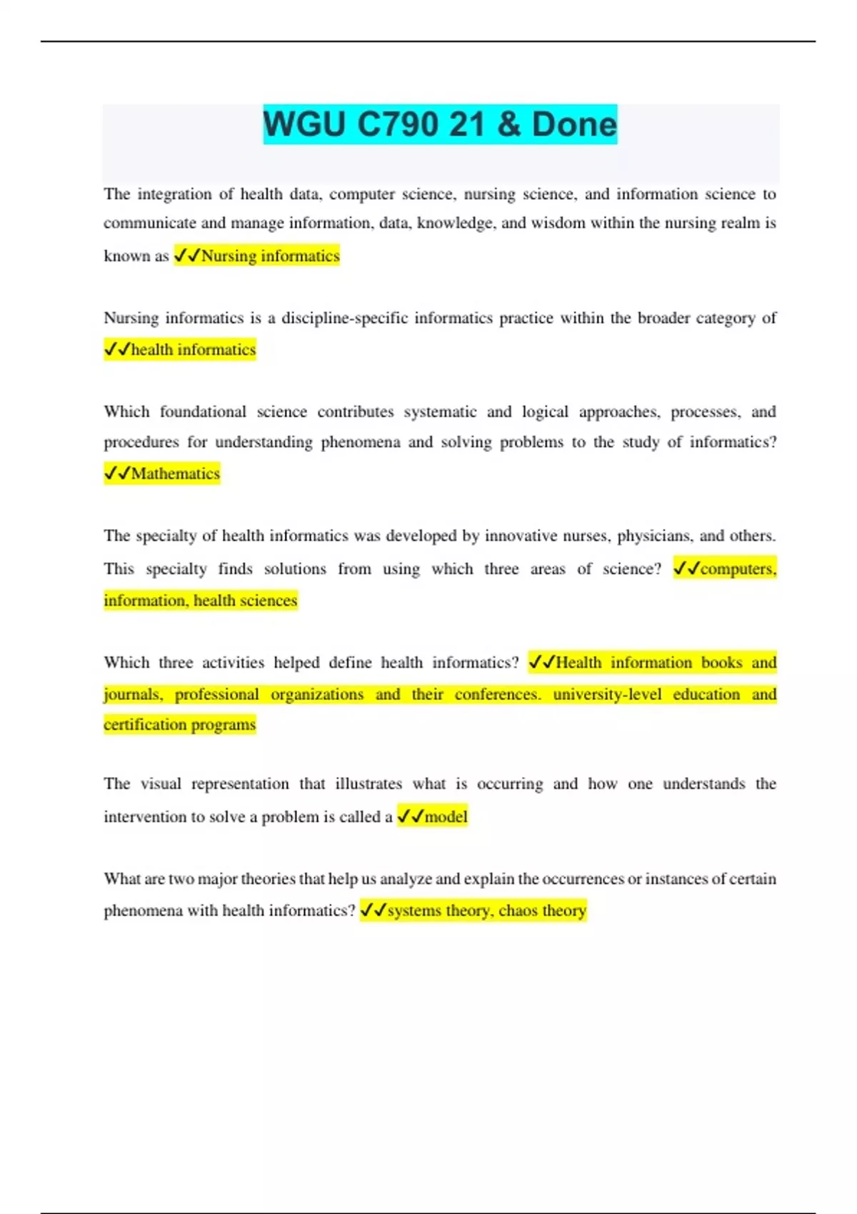 The integration of health data, computer science, nursing science, and information science to communicate and manage information, data, knowledge, and wisdom within the nursing realm is known as Nursing informatics Nursing informatics is a discipline-specific informatics practice within the broader category of health informatics Which foundational science contributes systematic and logical approaches, processes, and procedures for understanding phenomena and solving problems to the study of informatics? Mathematics The specialty of health informatics was developed by innovative nurses, physicians, and others. This specialty finds solutions from using which three areas of science? computers, information, health sciences Which three activities helped define health informatics? Health information books and journals, professional organizations and their conferences. university-level education and certification programs The visual representation that illustrates what is occurring and how one understands the intervention to solve a problem is called a model What are two major theories that help us analyze and explain the occurrences or instances of certain phenomena with health informatics? systems theory, chaos theoryThe STEEEP recommendations and redesign principles reflected in health professional education programs to improve the quality of care and are best described as safe, timely, effective, efficient, equitable, patient-centered The ACE Star Model of Knowledge Transformation is a model of five points to integrate evidencebased practice into informatics solutions. Which activities represent the five points of the star? discovery research, evidence summary, translation to guidelines, practice integration, evaluation of process and outcome The complex interactions among multiple users, products, and environments with varying characteristics in health information technology is referred to as what? sociotechnical system Employing usability processes in health information technology helps to improve individual and organizational productivity and efficiency