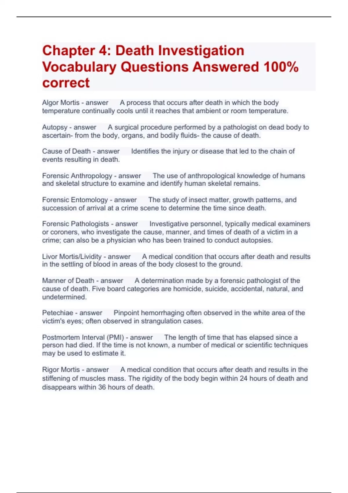 Chapter 4: Death Investigation Vocabulary Questions Answered 100% correct