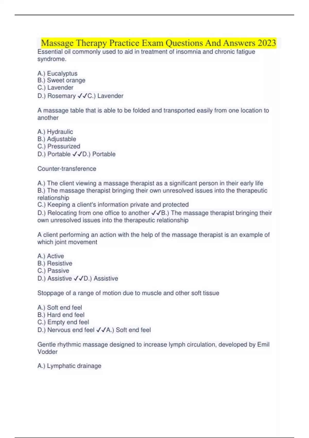 Massage Therapy Practice Exam Questions And Answers 2023 Massage Therapy Practice Exam Questions And Answers 2023 Massage Therapy Practice Exam Questions And Answers 2023