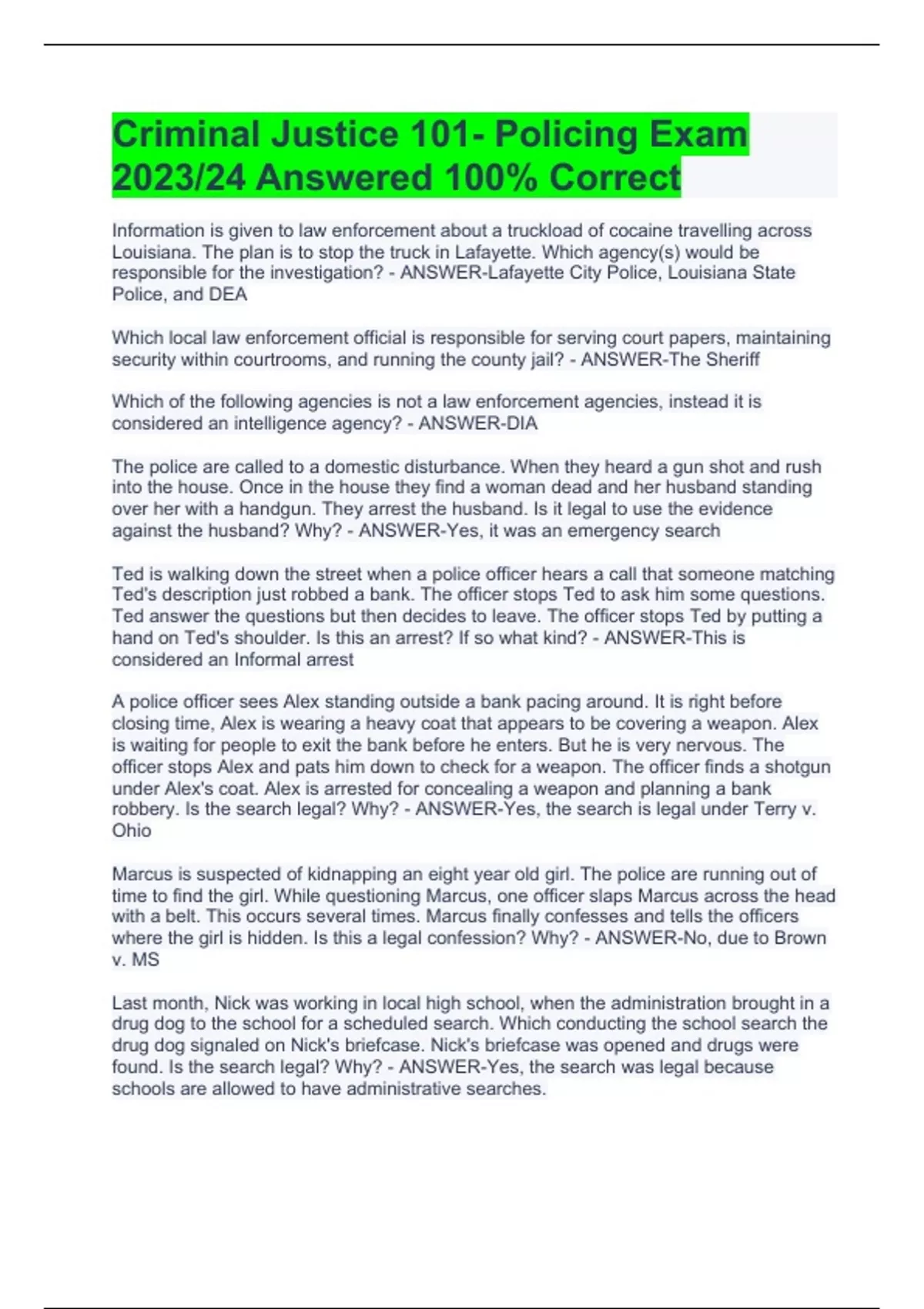 Criminal Justice 101- Policing Exam 2023/24 Answered 100% Correct