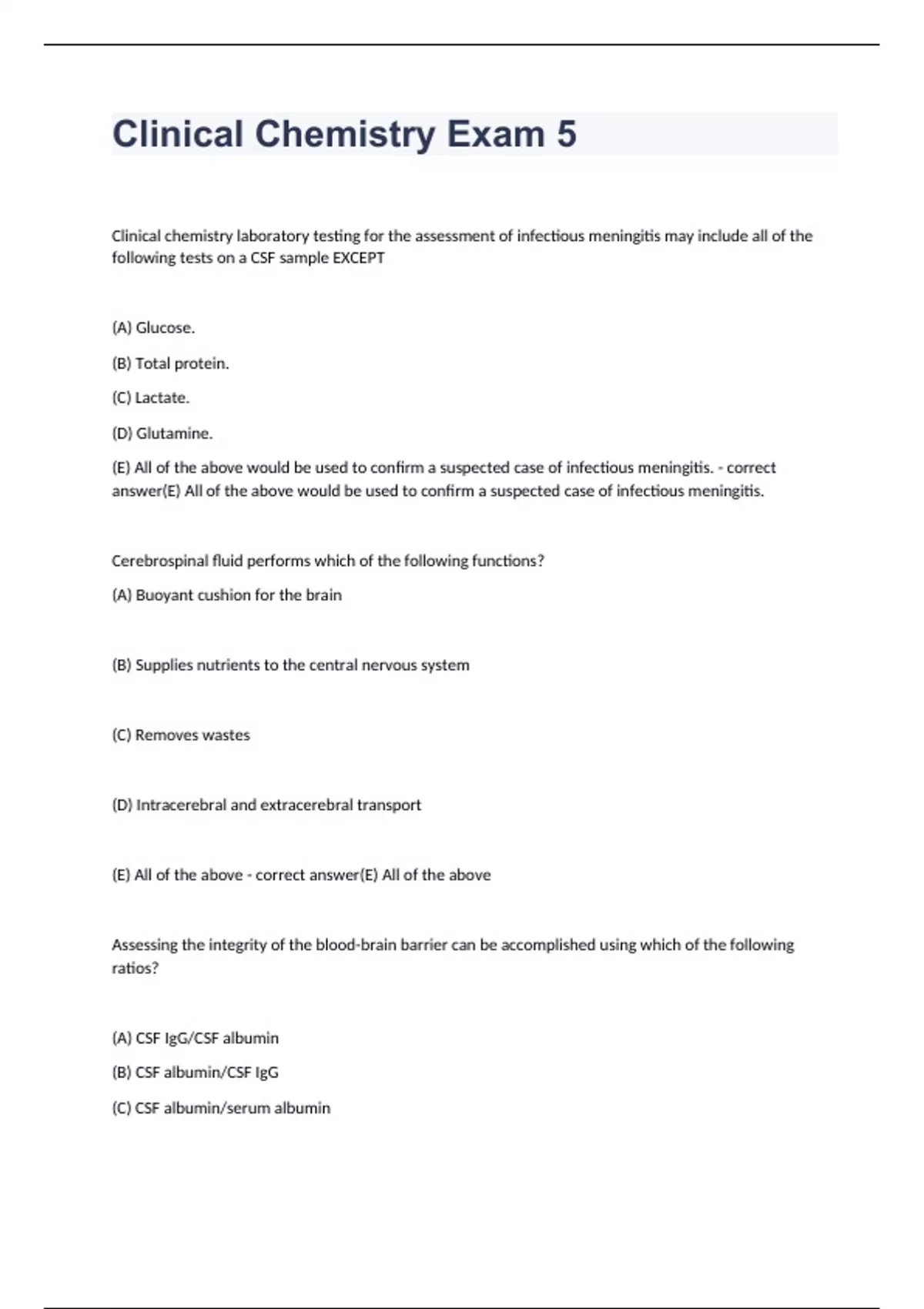 Clinical Chemistry Exam 5 2023 with 100% correct answers