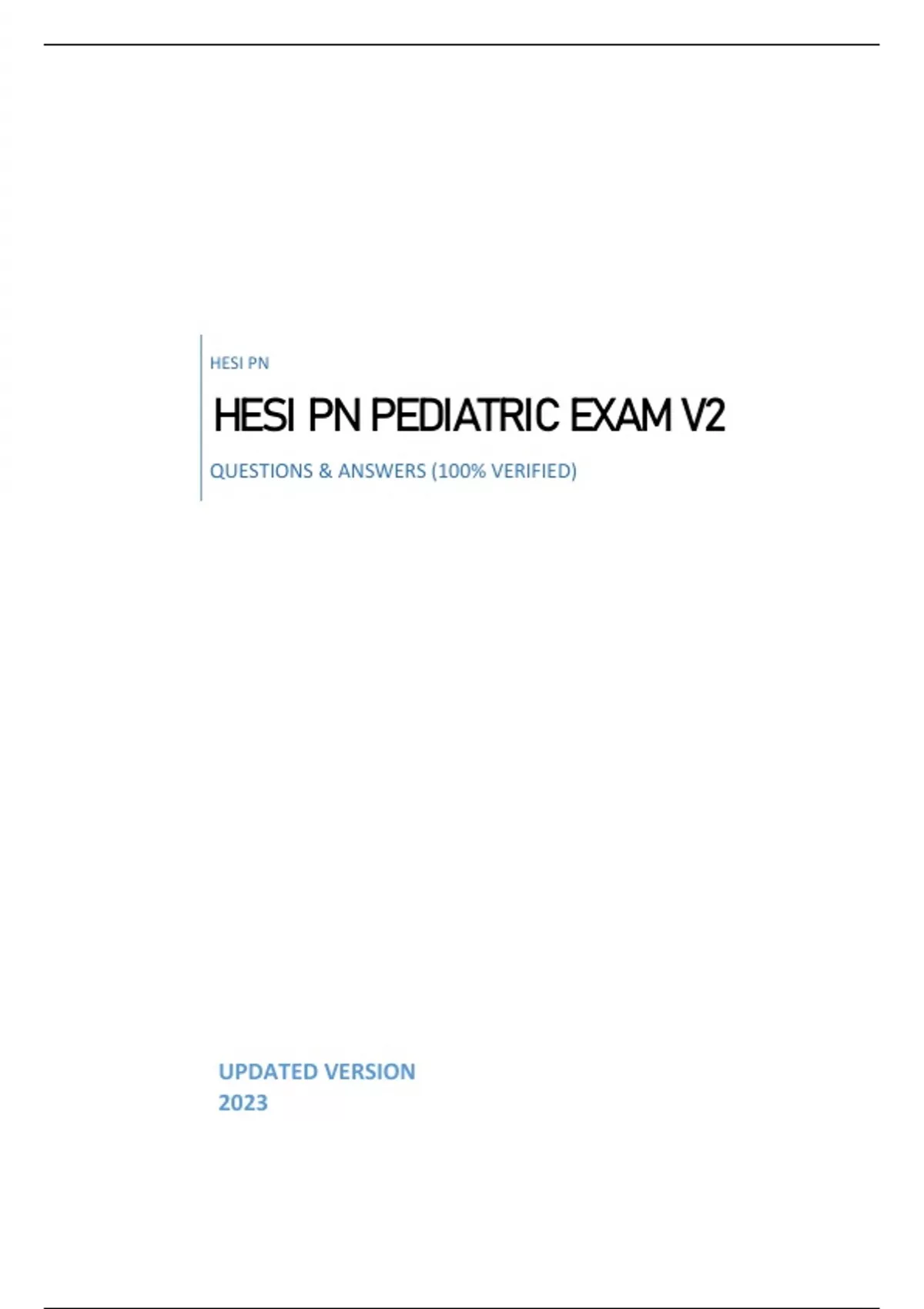 HESI PN PEDIATRIC EXAM V2 - QUESTIONS & ANSWERS (GRADED 98%) GUARANTEED 100% UPDATED 2023