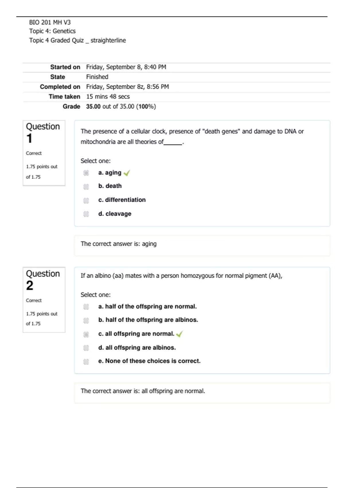 BIO 201 Topic 4 TEST Questions and Answers A&P Straighterline BIO 201 Topic 4 Genetics