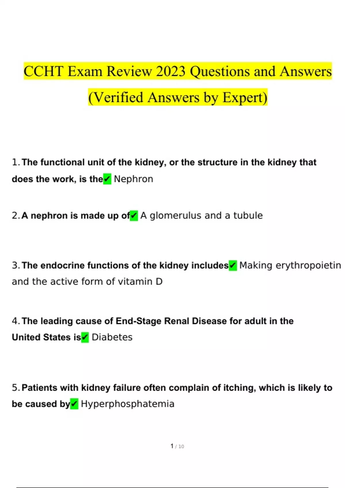 CCHT STUDY BUNDLE PACK SOLUTION 2023 (Questions and Answers )(Verified Answers)