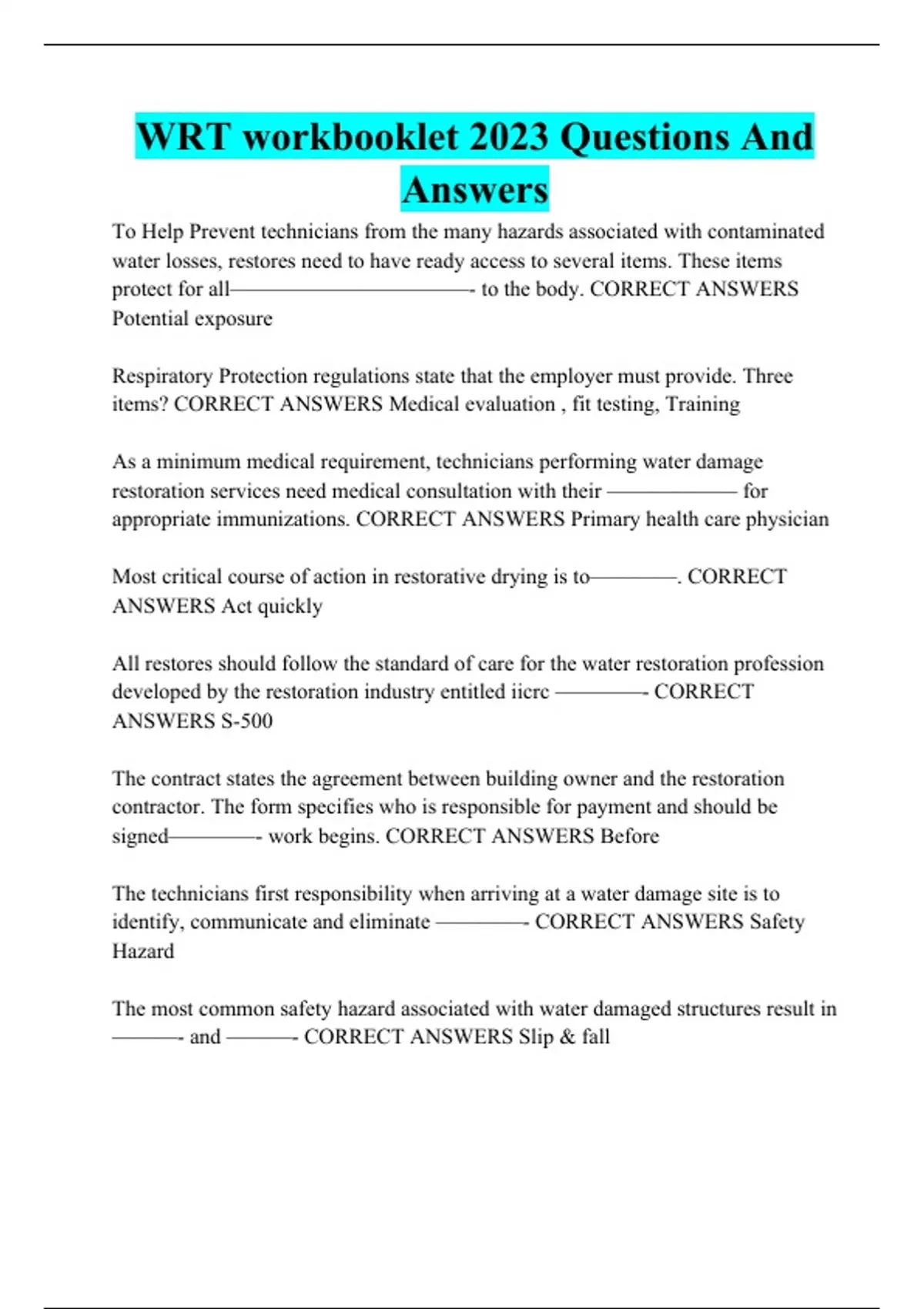 WRT workbooklet 2023 Questions And Answers