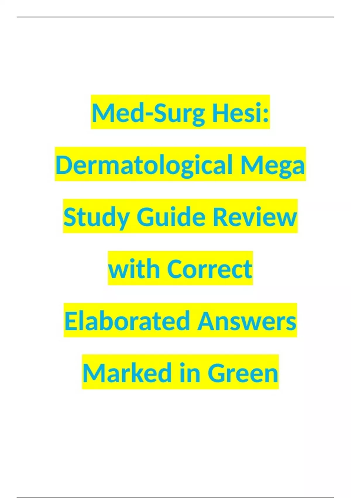 Med-Surg Hesi: Dermatological Mega Study Guide Review with Correct Elaborated Answers Marked in Green