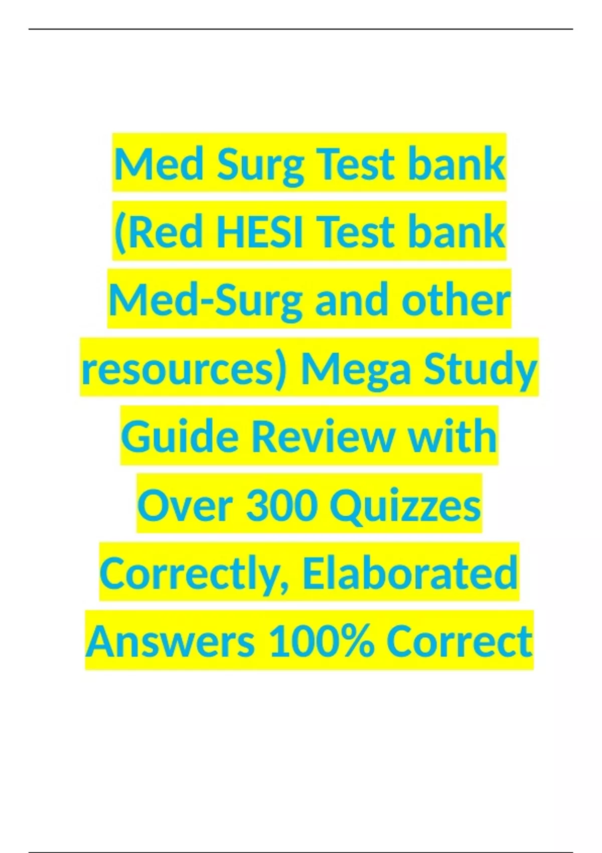 Med Surg Test bank (Red HESI Test bank Med-Surg and other resources) Mega Study Guide Review with Over 300 Quizzes Correctly, Elaborated Answers 100% Correct
