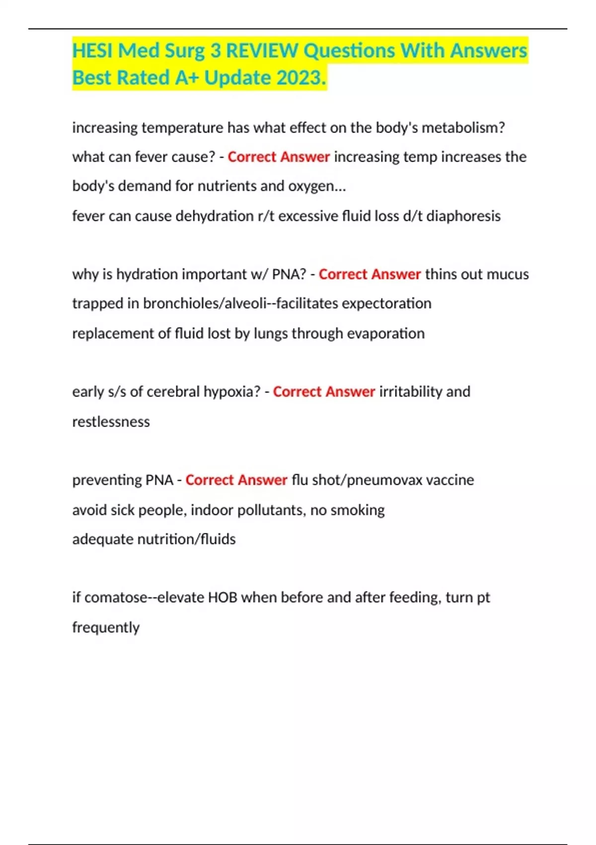 HESI Med Surg 3 REVIEW Questions With Answers Best Rated A+ Update 2023.