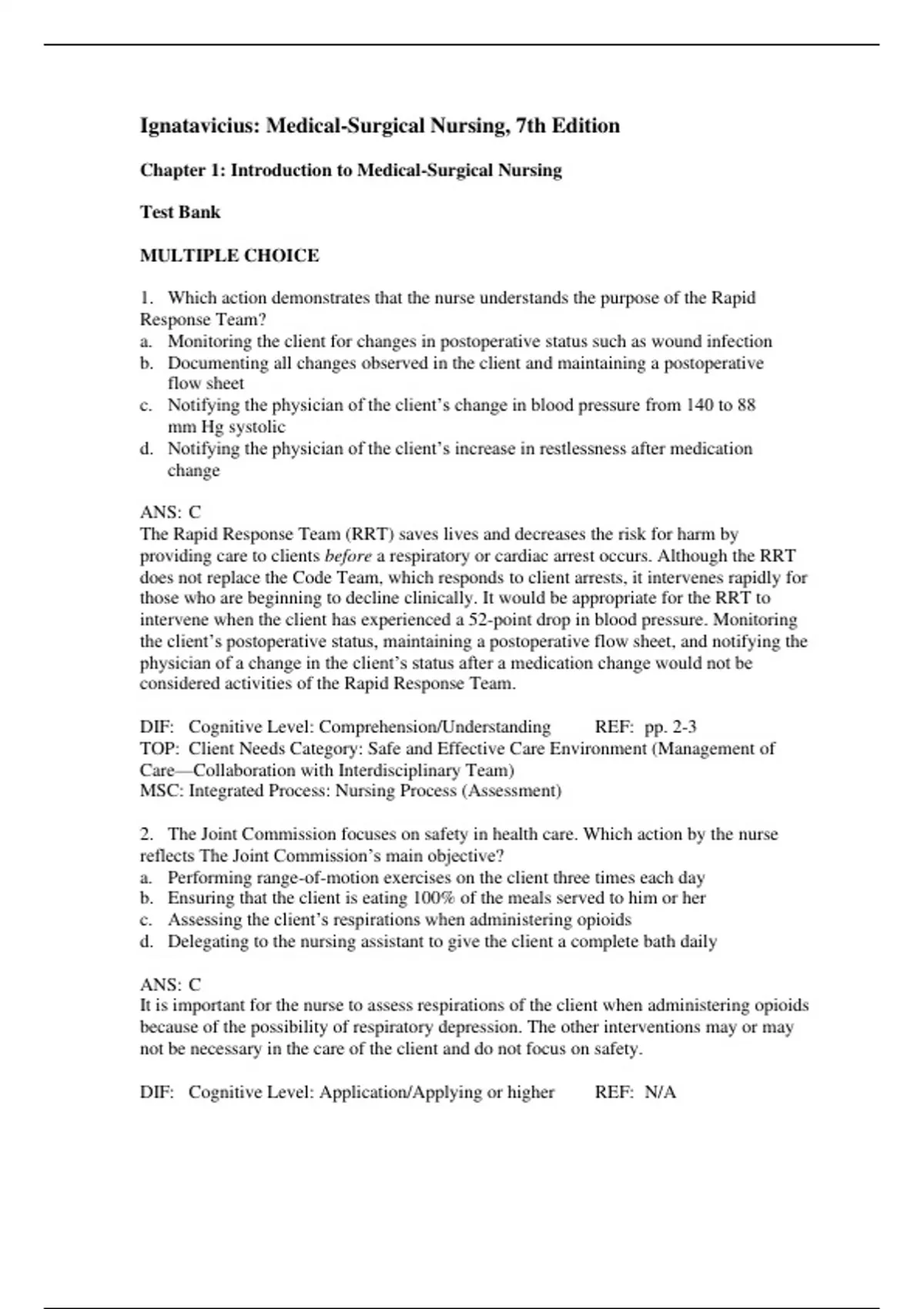 Test bank for Medical-Surgical Nursing 7th Edition Ignatavicius