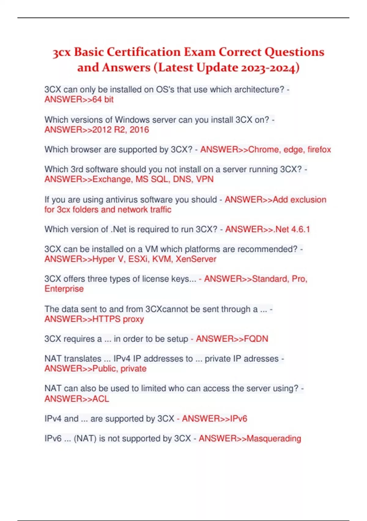 3cx Basic Certification Exam Correct Questions and Answers (Latest Update )
