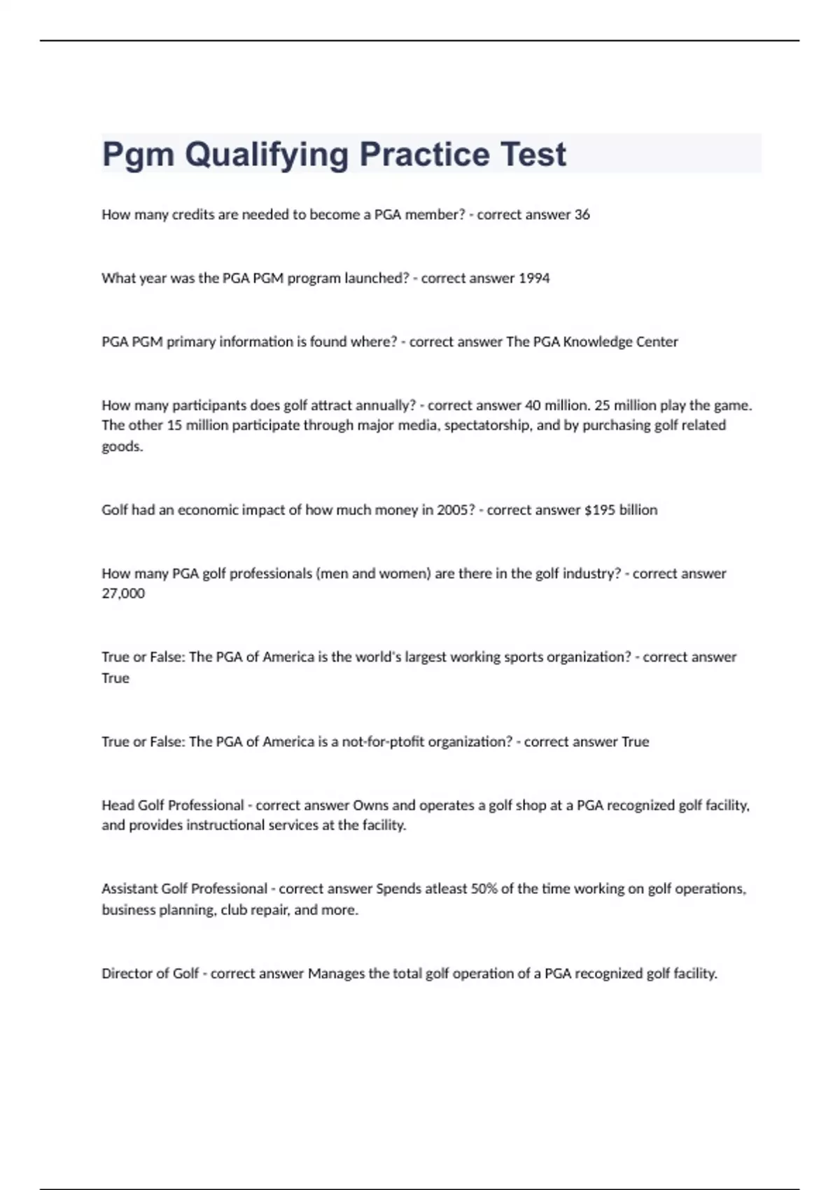 Pgm Qualifying Practice Test questions and 100% correct answers