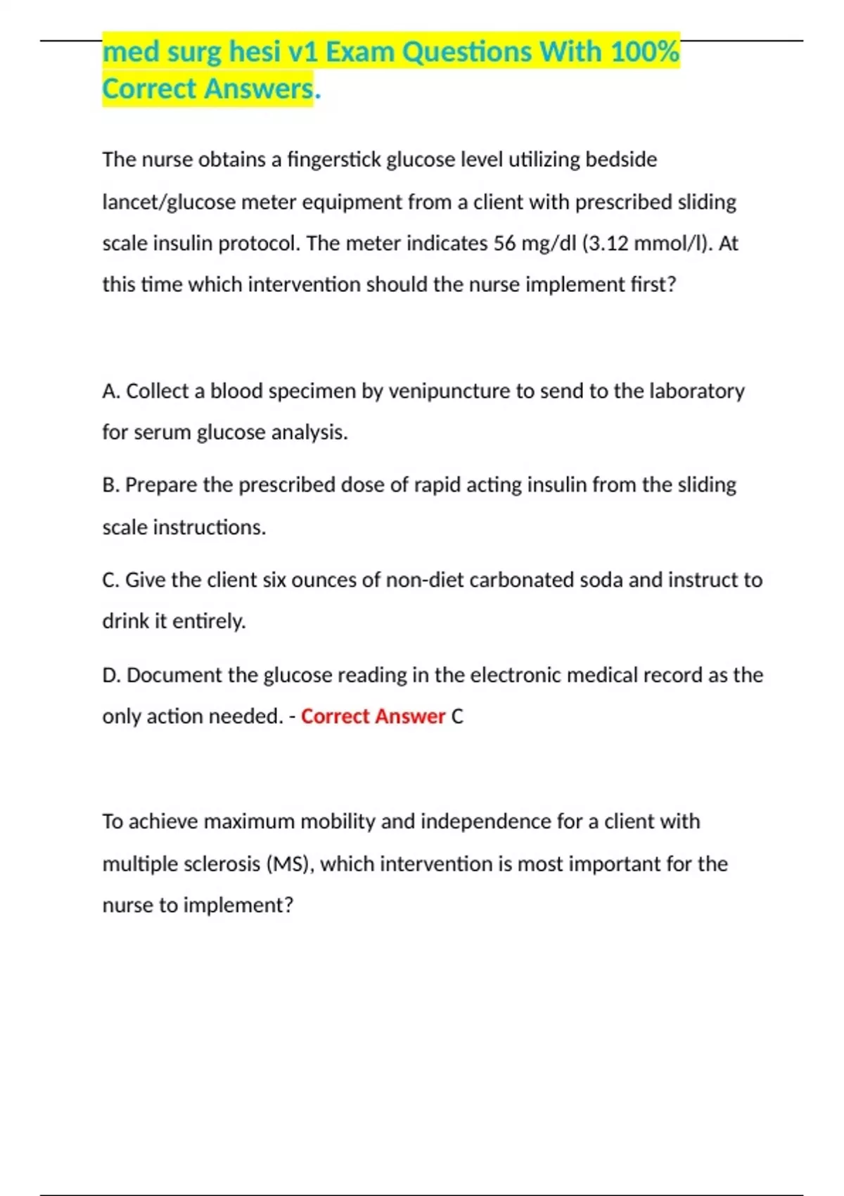 med surg hesi v1 Exam Questions With 100% Correct Answers.