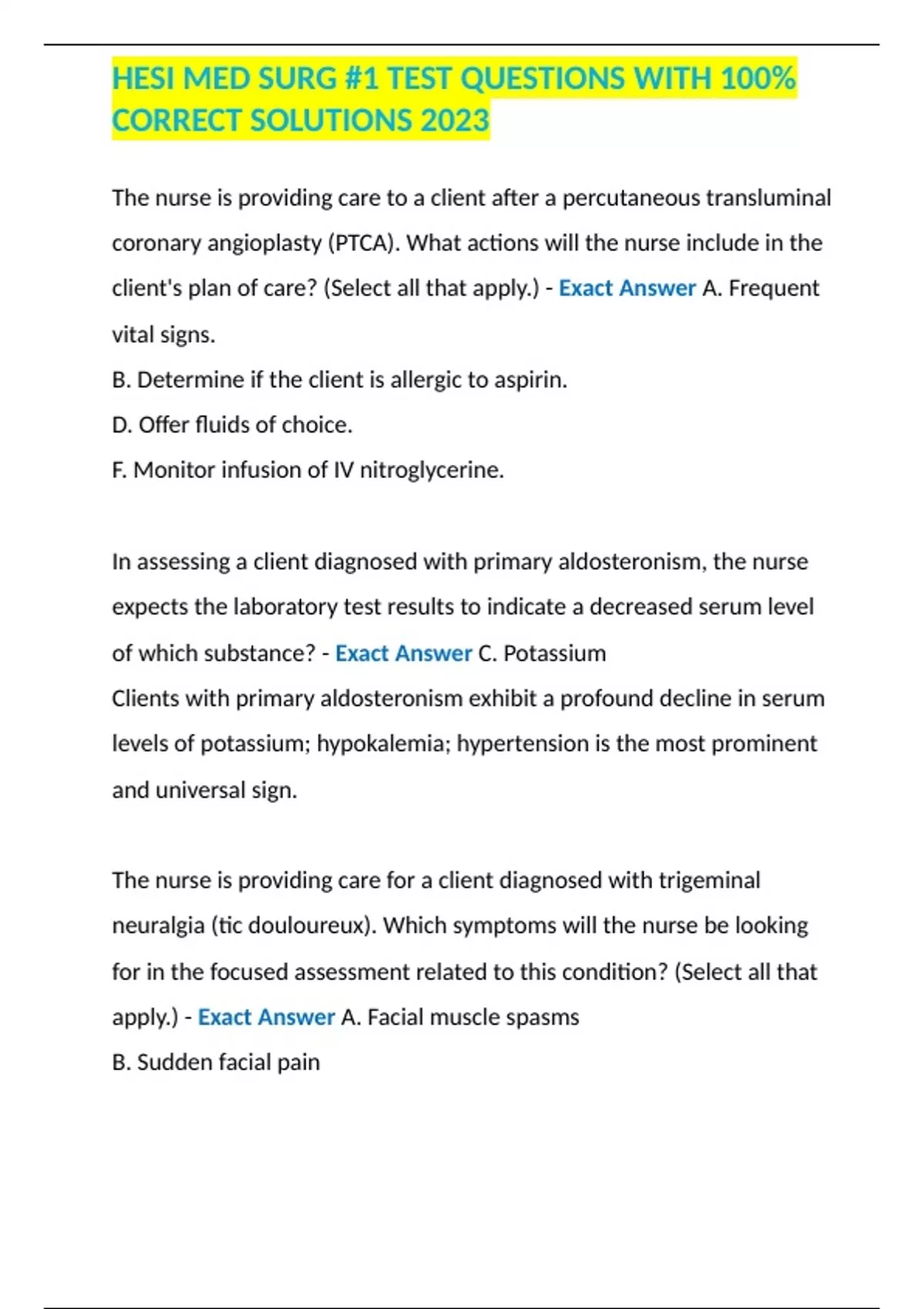 HESI MED SURG #1 TEST QUESTIONS WITH 100% CORRECT SOLUTIONS 2023
