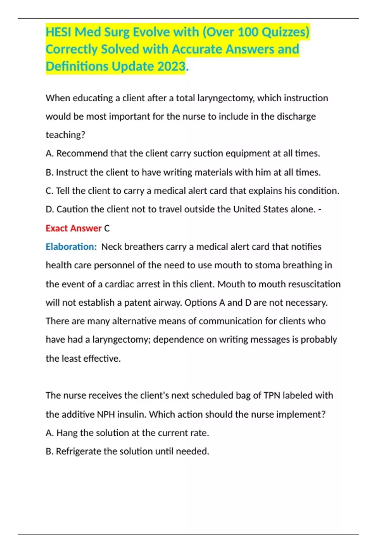 - HESI Med Surg Evolve with (Over 100 Qui