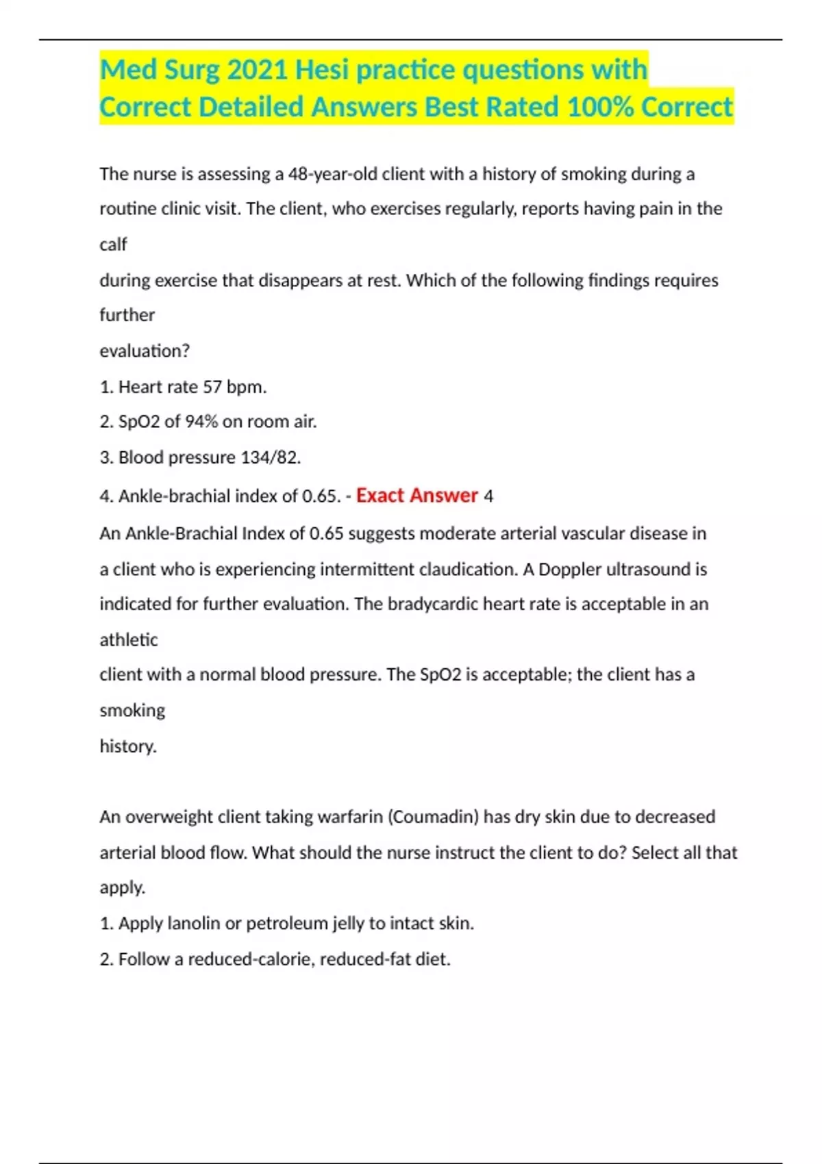 Med Surg 2021 Hesi practice questions with Correct Detailed Answers Best Rated 100% Correct