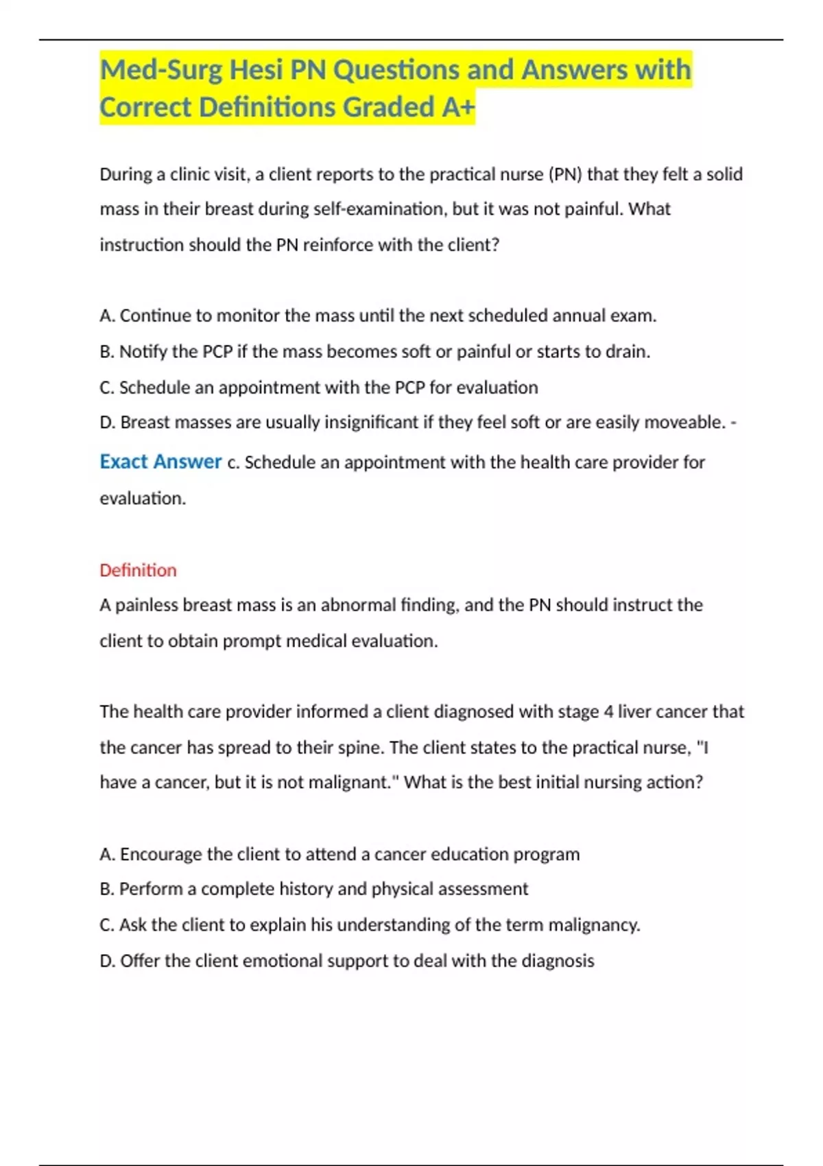 Med-Surg Hesi PN Questions and Answers with Correct Definitions Graded A+