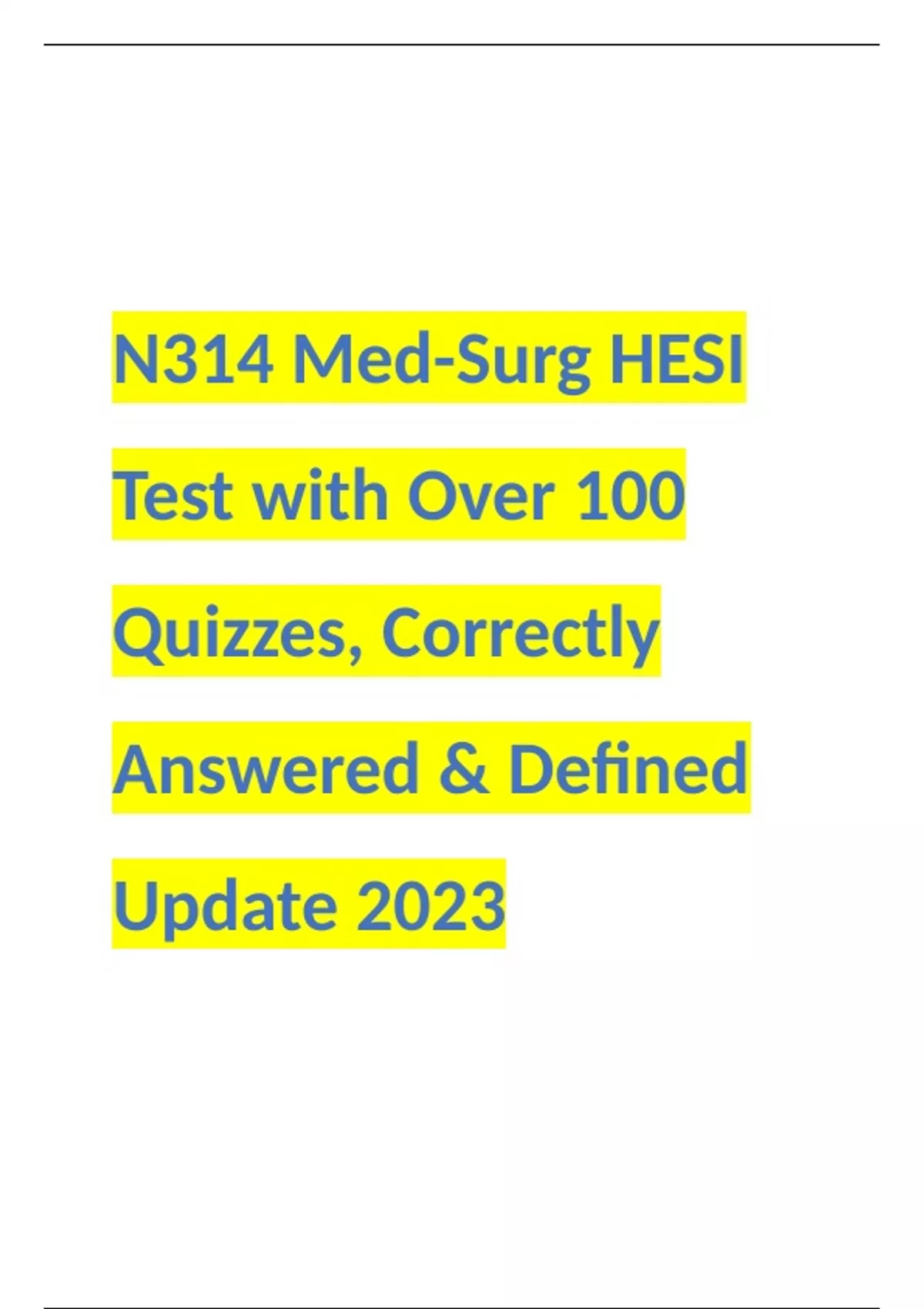 N314 Med-Surg HESI Test with Over 100 Quizzes, Correctly Answered & Defined Update 2023